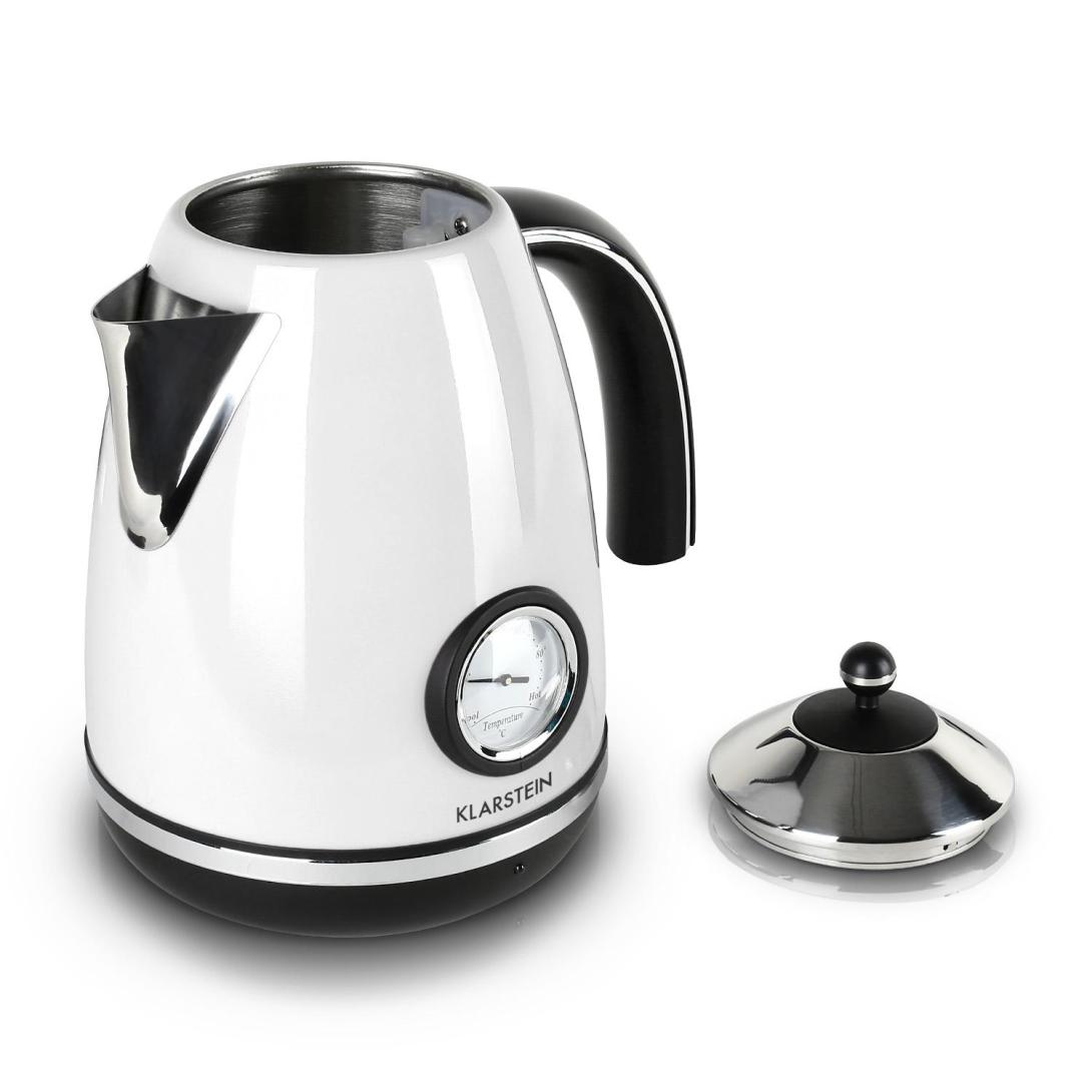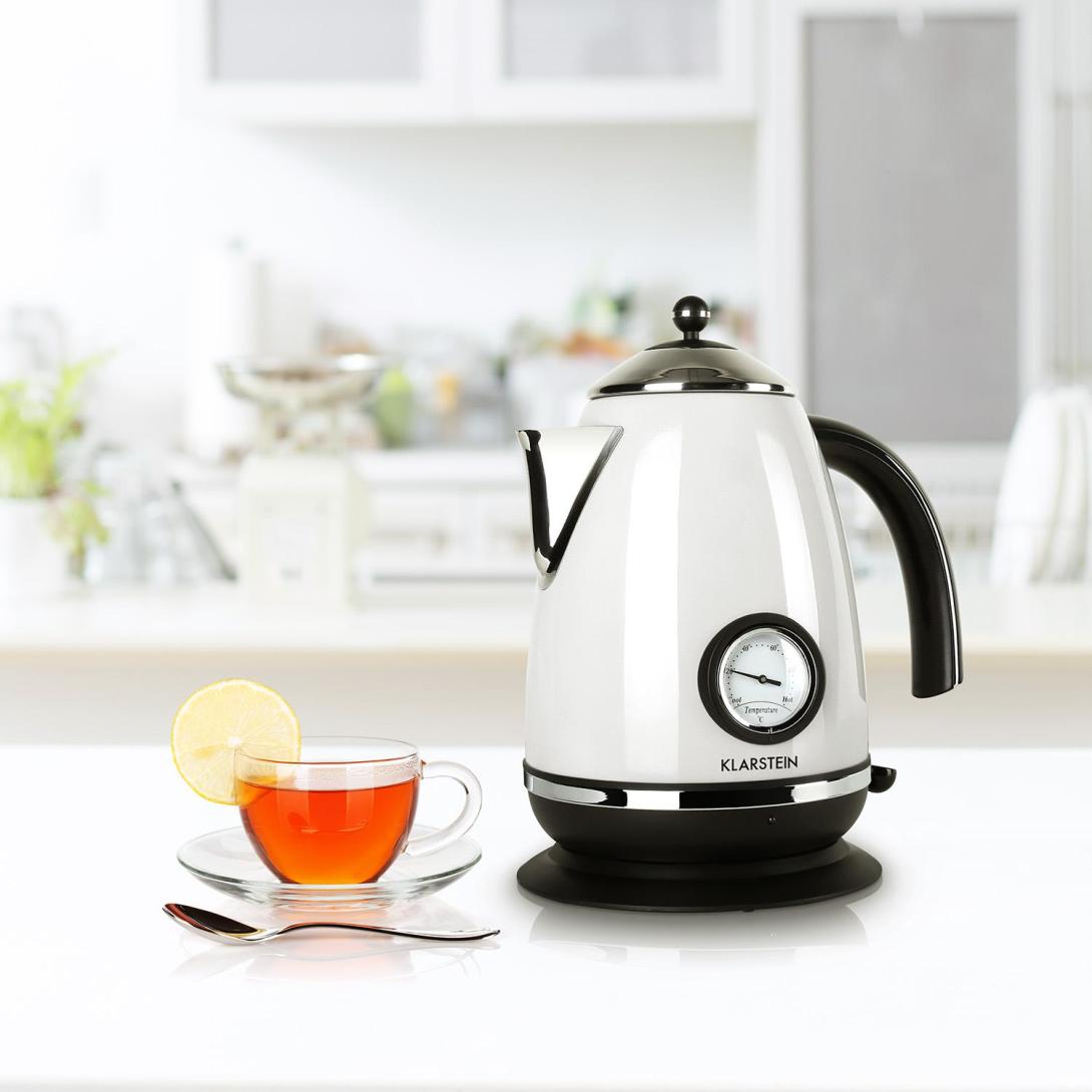 Klarstein Aquavita Chalet je šarmantná rýchlovarná kanvica na prípravu teplých nápojov, čaju, kávy a pod.