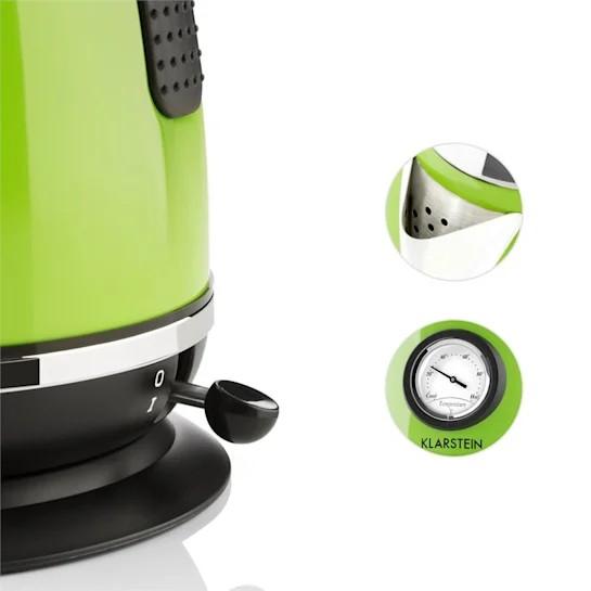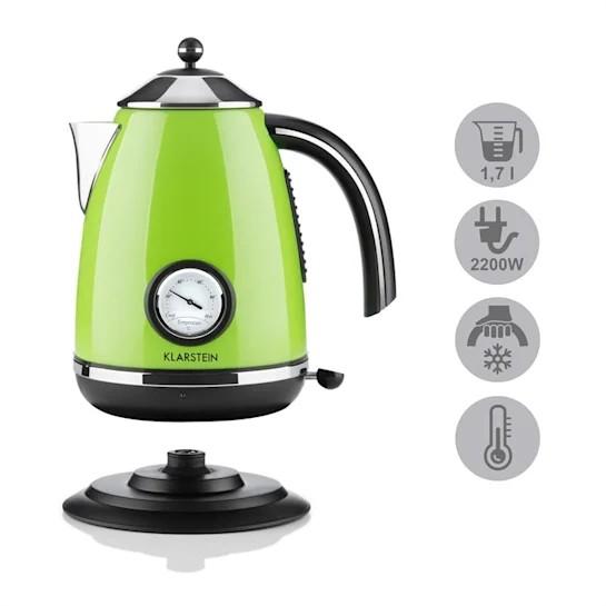 Klasická varná kanvica v dizajne čajníka s výkonom 2200W, objemom 1,7l a teplotne izolovanou rúčkou.Aquavita Chalet od výrobcu Klarstein je štýlová rýchlovarná kanvica na prípravu horúcej vody pre čaj či instantné jedlá.