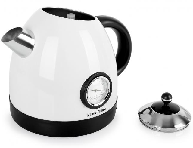 Klarstein Aquavita je ?armantná rýchlovarná kanvica na prípravu teplých nápojov, caju, kávy a pod.
