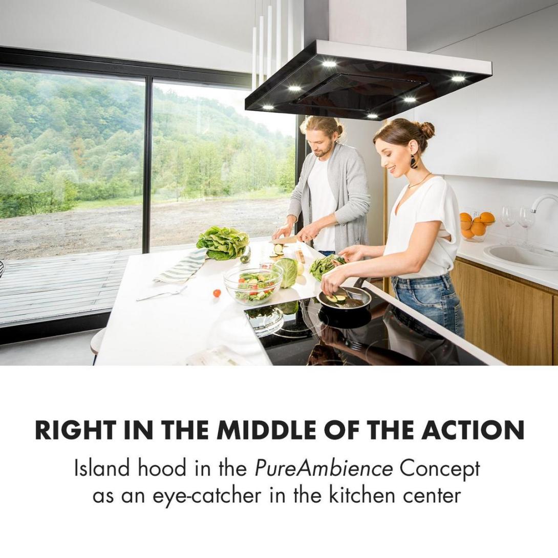 - V strede diania: ostrovčekový digestor s koncepciou PureAmbience Concept ako stredobod kuchyne