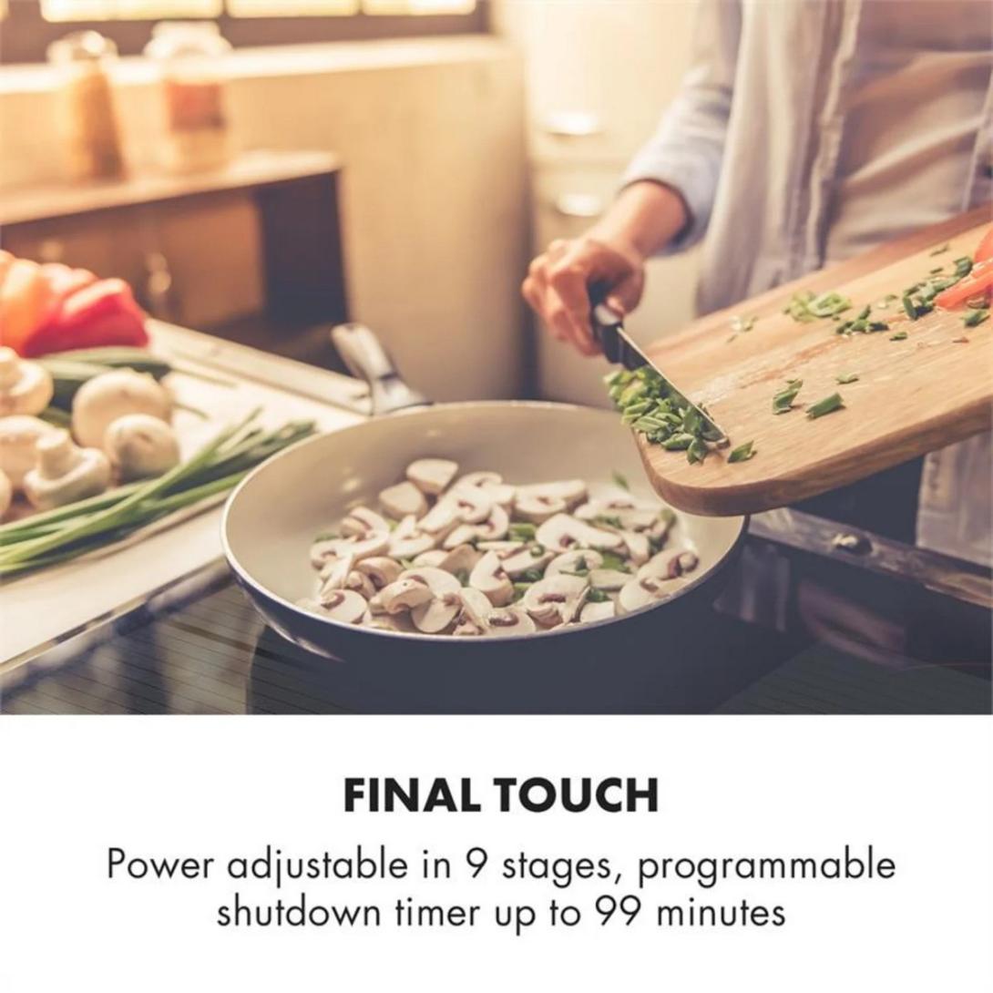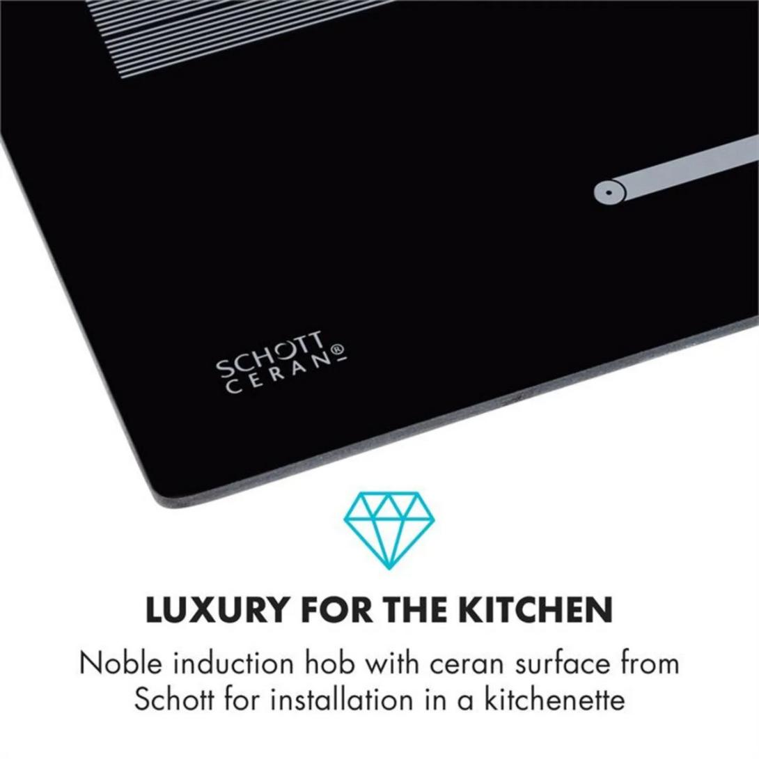 Opticky indukčná varná doska Klarstein Virtuosa Flex 90 presviedča svojím čiernym, ľahko udržiavateľným povrchom Ceran zo značkového skla od spoločnosti Schott, ktorý smelo uvádza indukčný sporák na scénu. Týmto spôsobom sa varná doska hravo začlení do každej kuchyne - či už klasickej, alebo modernej. Materiál, potrebný na inštaláciu do pracovnej dosky, je priamo súčasťou balenia.
