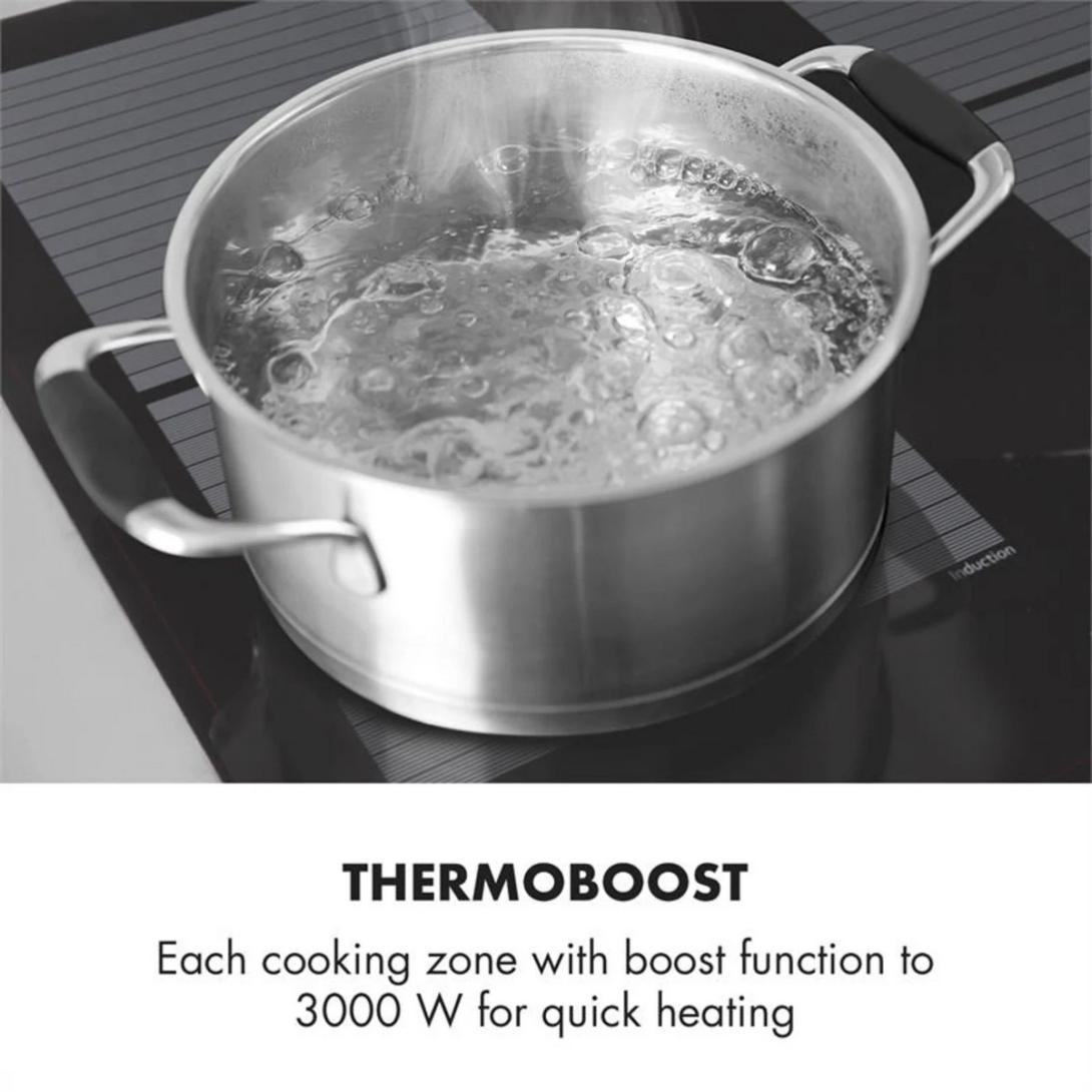 - Thermoboost: každá varná zóna s funkciou zosilnenia na 3000 W pre rýchle rozohriatie
