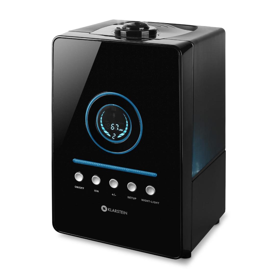 Klarstein ultrazvukový zvlhčovač vzduchu je nutnosťou pre všetkých, ktorí kladú dôraz na zdravý dýchaný vzduch.Je ideálny pre domácnosti, malé kancelárie a ďalšie miestnosti. Tam, kde sa pravidelne zdržiavate po dlhšiu dobu, sa inteligentné zariadenie postará o Vaše zdravie. V automatickom režime meria nepretržite vlhkosť vzduchu a v prípade potreby ju vyrovnáva jemnou vodnou parou. Táto je vytváraná pomocou vstavanej ultrazvukovej technológie. Pomocou diaľkového ovládania alebo predného panelu s na modro podsvieteným LED diódovým displejom možno individuálne nastaviť požadovanú vlhkosť a množstvo pary.S funkciou časovača môžete pohodlne nastaviť požadovanú dobu prevádzky. Tak sa zvlhčovač napríklad stará v noci vo Vašej spálni o zdravý spánok. LED diódové osvetlenie zásobníka na vodu je možné zapnúť na želanie v príjemnej modrej farbe nočného svetla. Integrovaný filter pritom pôsobí antibakteriálne a z Vášho vzduchu odstraňuje prach, umožňuje prejsť iba zdravému vzduchu.Prepínateľný ionizátor vytvára ozón, ktorý spôsobuje štiepenie molekúl viazaných na zápach, a tým prispieva k Vašej pohode a čerstvejšiemu vzduchu v miestnosti.6-litrovú nádrž na vodu možno odstrániť, vyčistiť a naplniť.