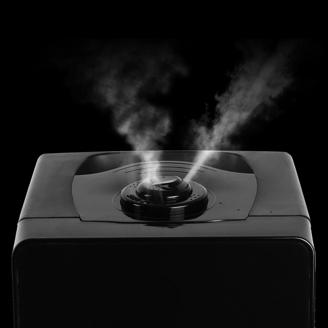 Zvlhčovač a ionizátor pre filtrovanie, zvlhčenie a ionizáciu vzduchu v malých až stredne veľkých miestnostiach (40 m2).S inteligentným riadením vlhkosti, funkciou časovača a nastaviteľným výstupom pary.6-litrová nádrž na vodu s modrým LED diódovým osvetlením, digitálnym displejom a diaľkovým ovládaním.