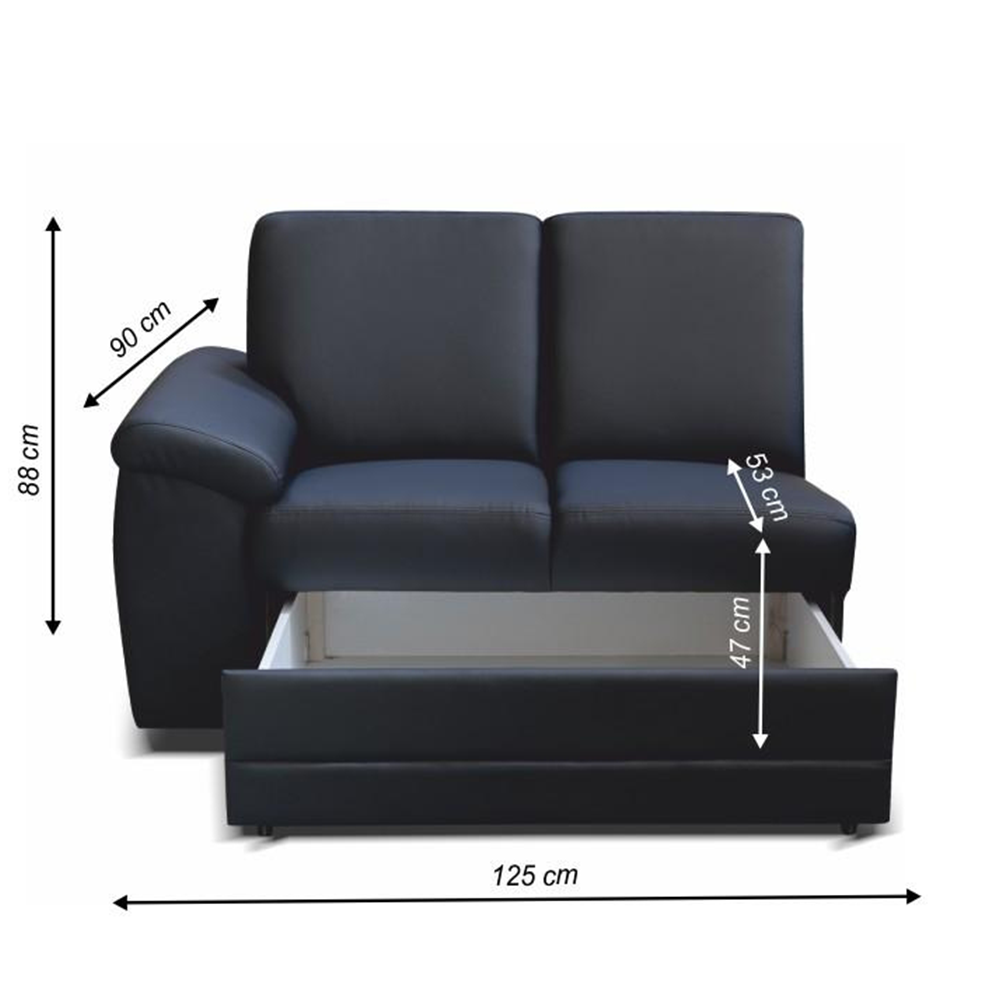 ľavá 2- sed s opierkami a úložným priestorom BITER 2 1B ZS Materiál: ekokoža Oderuodolnosť textílie podľa testu Martindale: 100 000 oderov Farba: čierna Rozmery (ŠxHxV): 125x90x88 cm Výška spodného priestoru od podlahy: 3 cm Nosnosť na osobu: 90 kg Dodacia lehota 8-10 týždňov. Ponúkame vám možnosť zvoliť si farebný odtieň zo siedmich farieb látky Cablo a zo siedmich farieb ekokože. Odtiene nájdete v priloženom vzorkovníku. Výber farebného odtieňa poznačte pri objednávaní priamo do poznámky. Pri individuálnej objednávke je potrebné zaplatiť 10% zálohu z danej sumy. Po uhradení zálohy bude Vaša požiadavka zadaná do výroby. Doba dodania 6-8 týždňov. Cena takto zloženej sedačky v inej farbe závisí od počtu jednotlivých dielov, ktoré ju tvoria. Odporúčame preveriť si konečnú cenu.