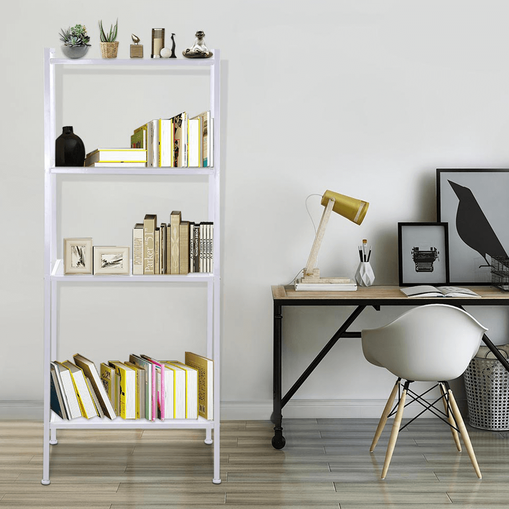 KONDELA 4-policový kovový regál, biela, ALDEA