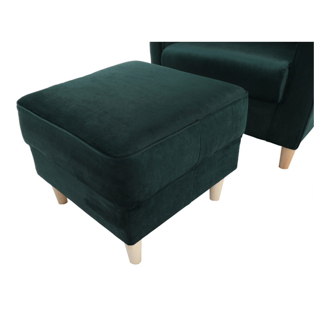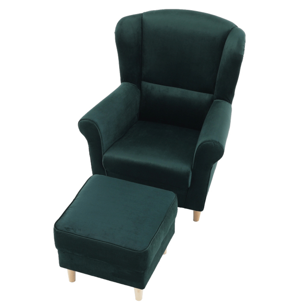 Pohodlné kreslo - ušiak s taburetom, prevedenie: Riviera látka smaragdová- nožičky drevené. Oderuodolnosť textílie podľa testu Martindale: 90 000 oderov rozmery (ŠxVxH): kreslo - 86x105x82 cm, taburet - 53x42x53 cm, Výška spodného priestoru od podlahy: 13 cm Nosnosť kresla: 120 kg Nosnosť taburetu: 90 kg Dodávané v demonte. Možnosť objednania v 6 farebných prevedeniach látky alova v cene 319 eur alebo látky Soro v cene 339 Eur. Pri individuálnej objednávke je potrebné zaplatiť 10% zálohu z danej sumy. Po uhradení zálohy bude Vaša požiadavka zadaná do výroby. Dodacia lehota 6-8 týždňov.