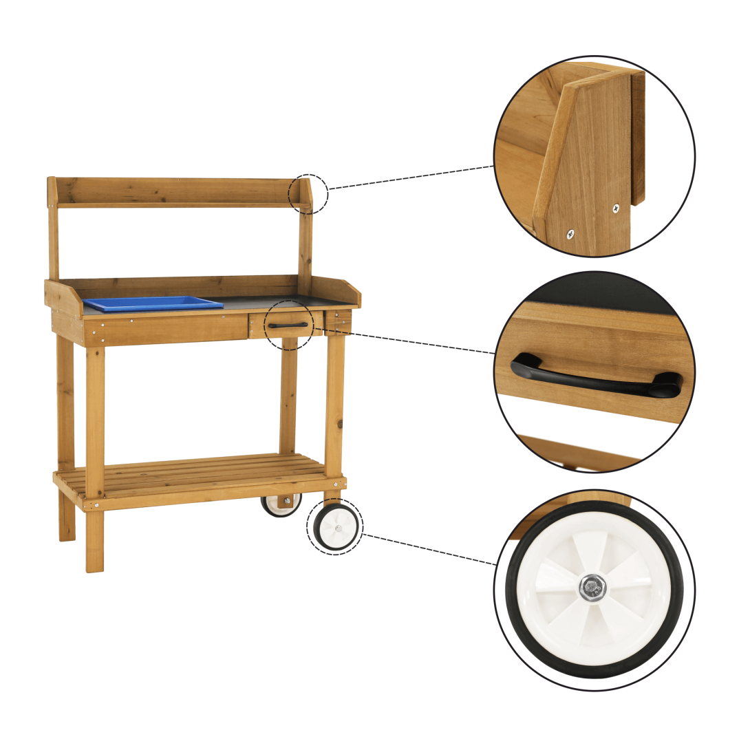 KONDELA BARDY ZAHRADNY PRACOVNY STOL S UMYVADLOM DREVO/HNEDA
