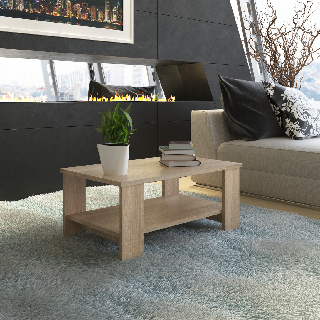 Konferenčný stolík BERNARDO. Materiál: DTD laminovanáPrevedenie: dub sonomaRozmery (ŠxHxV): 90x55x40,7 cm.Hrúbka materiálu korpus: 22 mmKvalitný slovenský výrobokDodávaný v demonte