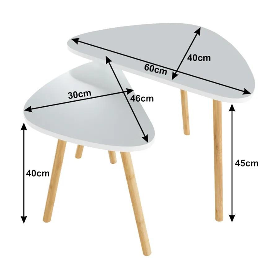 Hľadáte praktický a dizajnový stolík vhodný do vašej obývačky? A čo tak rovno dva stolíky? Predstavujeme vám atraktívnu sadu konferenčných stolíkov BISMAK, ktoré vytvoria vo vašej domácnosti príjemnú a útulnú atmosféru. Korpus stola je vyrobený z MDF v bielej farbe, nohy sú z prírodného lakovaného bambusu. Využite bohatú odkladaciu plochu, a odložte si naň nedočítané noviny, koláčiky pre hostí, šálku kávy alebo nohy po dlhom únavnom dni. Tiež poslúži ako podstavec na kvetináč s izbovými rastlinami.