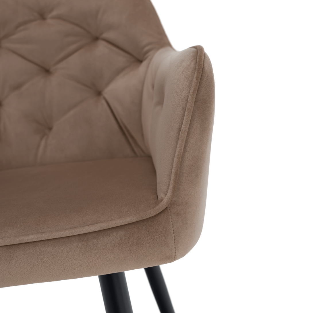 Materiál: látka Bluvel 28/kovOderuodolnosť textílie podľa testu Martindale: 80 000 oderovFarba: svetlohnedá Velvet/čiernaRozmery (ŠxHxV): 58,5x62x81 cmVýška sedu: 48 cmHĺbka sedu: 46 cmŠírka sedenia: 43 cmVýška chrbtovej opierky: 39 cmNosnosť: 90 kgDizajnovéDekoratívne prešité S mäkkou sedacou časťouDodávané v demonte