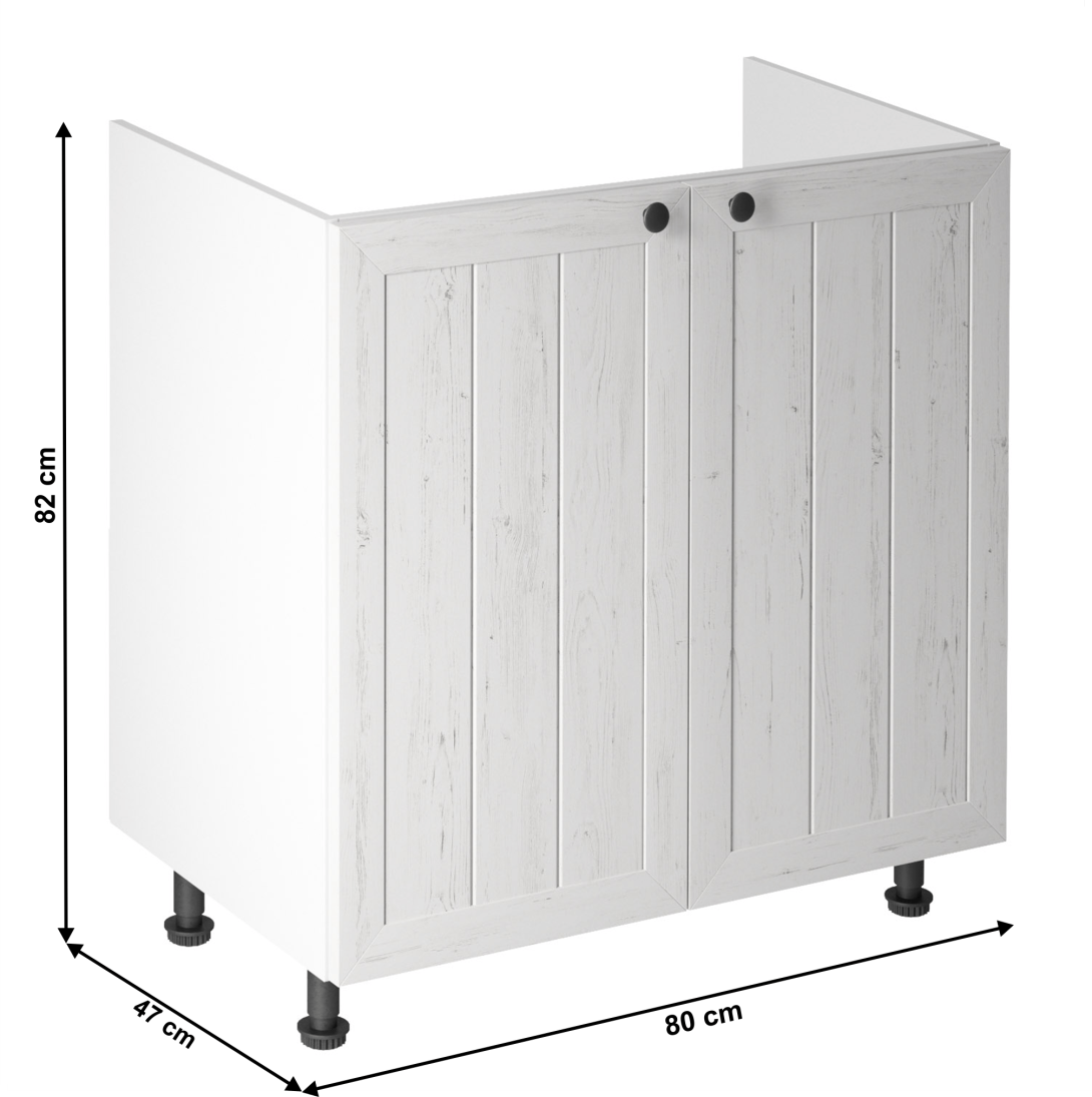 Spodná drezová skrinka ku kuchyni PROVANCEPrevedenie: DTD laminovaná/MDFFarba: biela/sosna andersenRozmery (ŠxHxV): 80x47x82 cmHrúbka materiálu: 15 mmSystém tichého zatvárania dvierokCena sektorových skriniek je uvádzaná bez pracovnej dosky a spodnej lišty. Cena za pracovnú dosku dub lancelot je 56 Eur/bm - hrúbka 38 mm, cena za spodnú lištu je 14 Eur. Ku každej dolnej skrinke okrem D25PZ, je potrebné doobjednať 2 ks úchytov na sokel cena 1 Eur/2 ks.