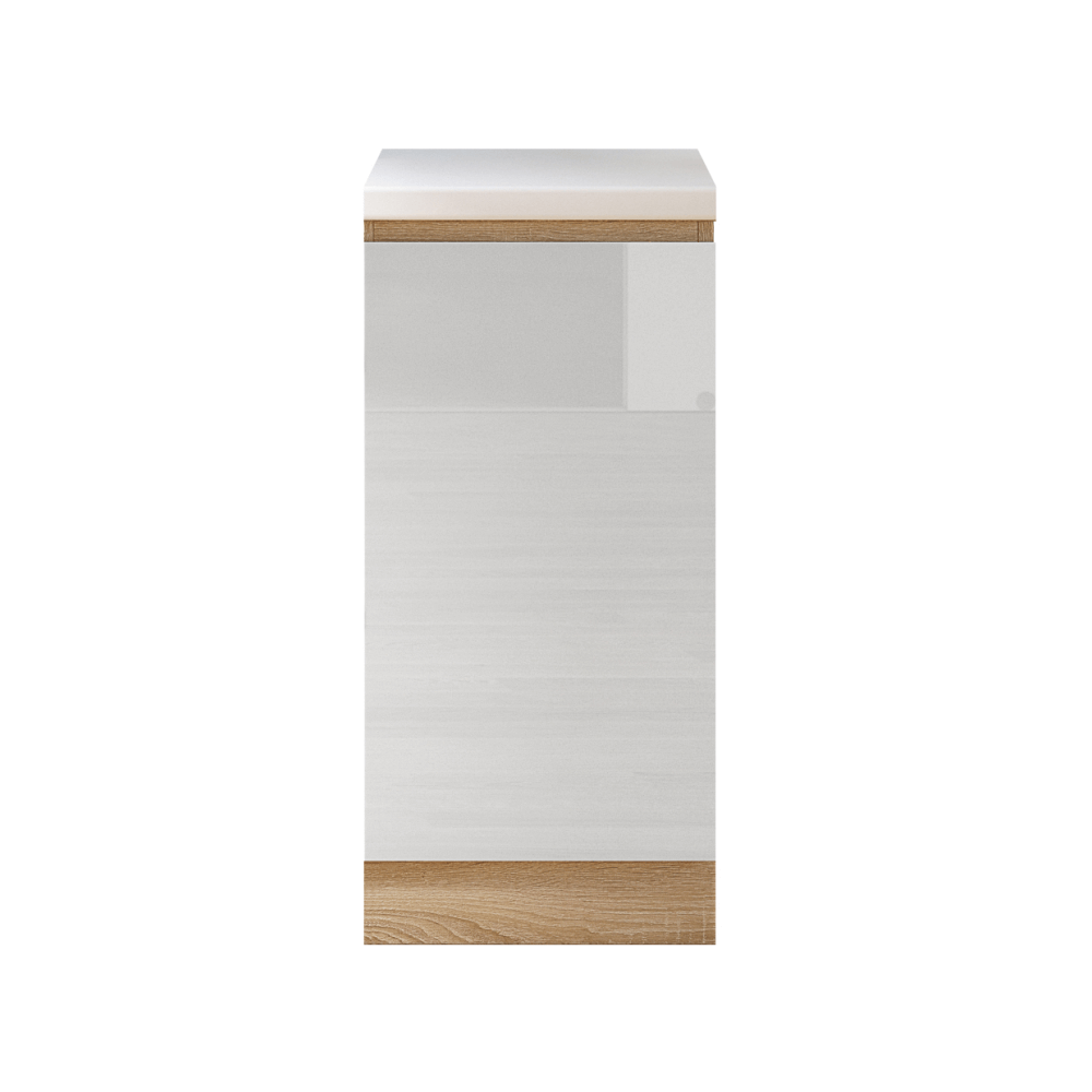 KONDELA Dolná skrinka D 40, vysoký biely lesk/dub sonoma, pravá, LINE