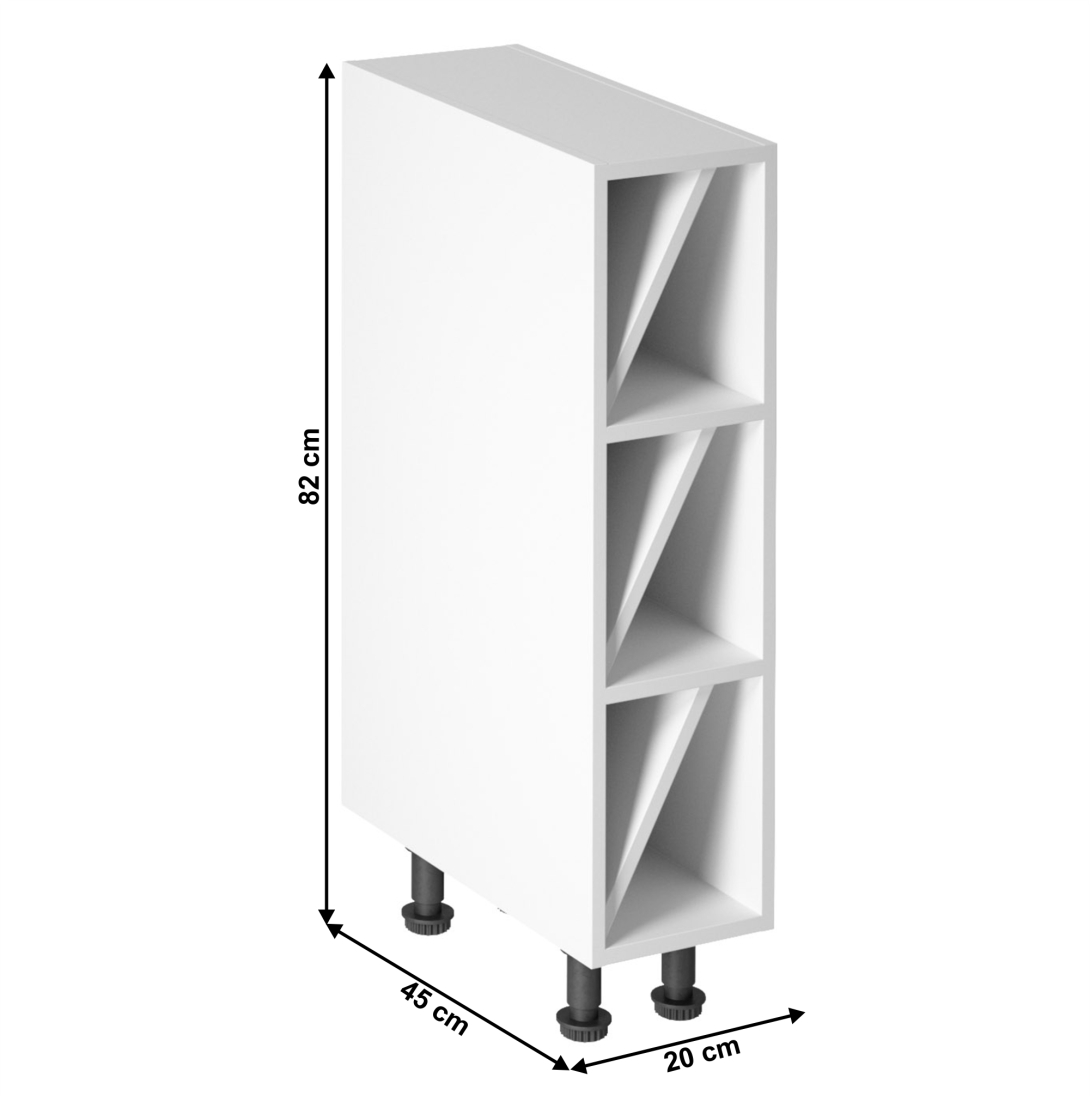 Spodná skrinka s policami ku kuchyni PROVANCEPrevedenie: DTD laminovanáFarba: bielaRozmery (ŠxHxV): 20x45x82 cmHrúbka materiálu: 15 mmCena sektorových skriniek je uvádzaná bez pracovnej dosky a spodnej lišty. Cena za pracovnú dosku dub lancelot je 56 Eur/bm - hrúbka 38 mm, cena za spodnú lištu je 14 Eur. Ku každej dolnej skrinke okrem D25PZ, je potrebné doobjednať 2 ks úchytov na sokel cena 1 Eur/2 ks.
