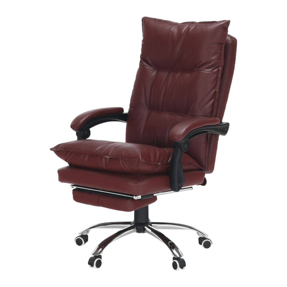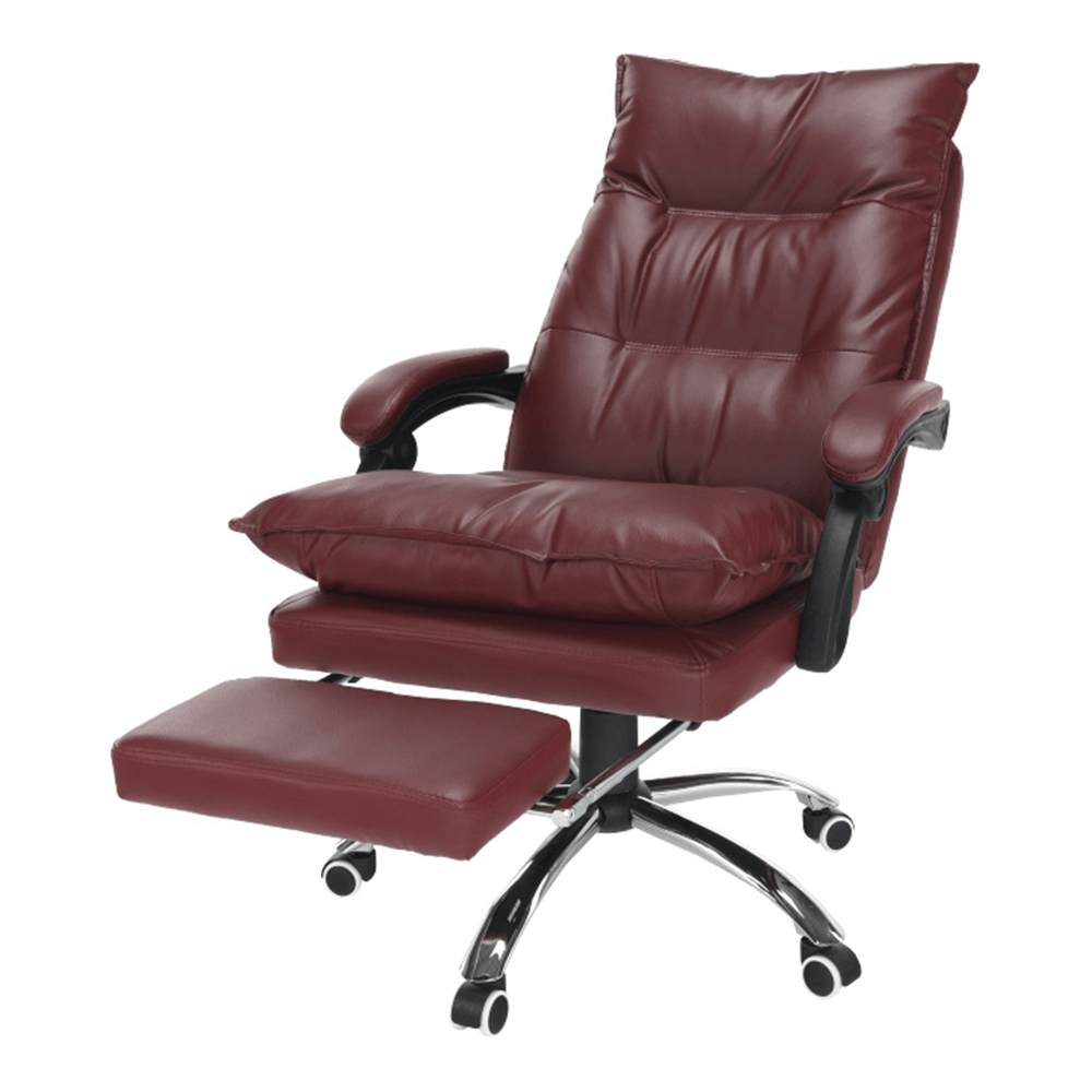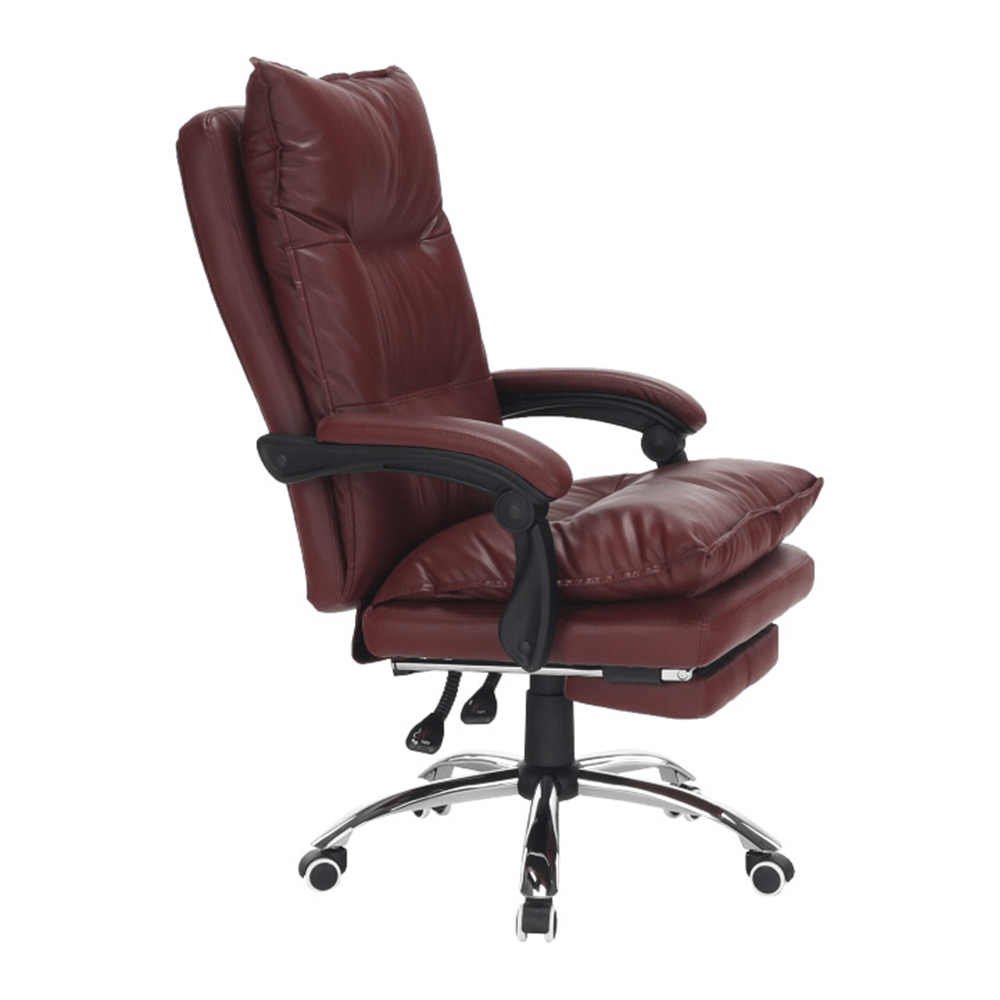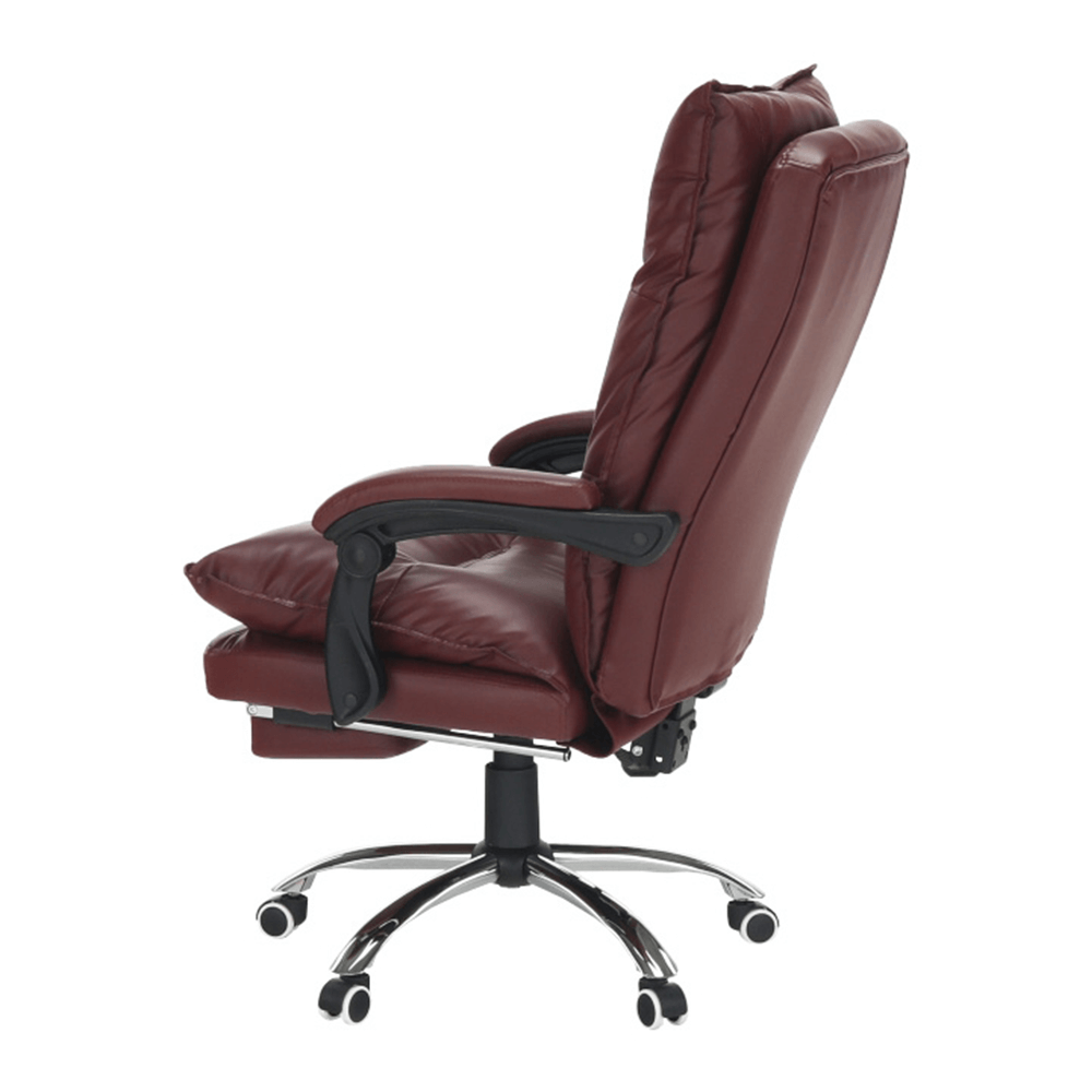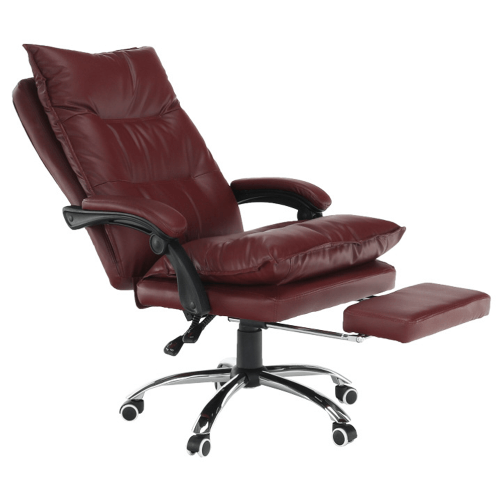 Kancelárske kreslo DRAKE s polohovacou opierkou chrbta a výsuvnou podnožou. Materiál: ekokoža/kovOderuodolnosť ekokože podľa testu Martindale: 100 000 oderovFarba: bordová/chrómRozmery (ŠxHxV): 72x85x111-118 cm Výška sedu: 56-64 cmHĺbka sedu: 51Výška od zeme po opierku na ruky: 67-75 cmNosnosť: 110 kgVýsuvná teleskopická podnožOtočná o 360°Nastavenie sklonu operadla 90° - 135°S ergonomickými vankúšmi na operadle a sedadleMožnosť nastaviť výšku seduRozšírená chrbtová časťČalúnené plastové opierky na rukyPäťramenná chrómová podstavaUniverzálne kolieska vhodné na mäkké aj tvrdé podlahyDodávané v demonte