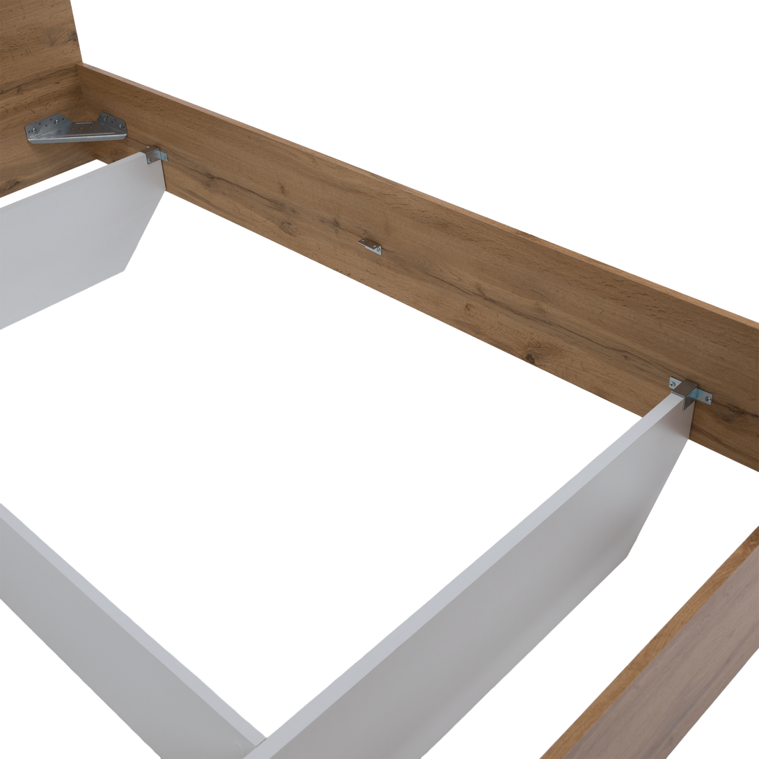 Posteľ, 180X200, GABRIELAMateriál: DTD laminovanáFarba: dub wotan/bielaRozmery (ŠxHxV): 183,6x203,2x90 cmHrúbka materiálu: 16/22 mm Výška matraca: 15 cmNosnosť: 110 kgPosteľ dodávaná bez roštu a matraca. Možnosť dokúpiť matrac a rošt v pevnom rámeK posteli doporučujeme zakúpiť rošt Monna a matrac o rozmere 180x200 cm z našej ponuky. Dodávané v demonte.