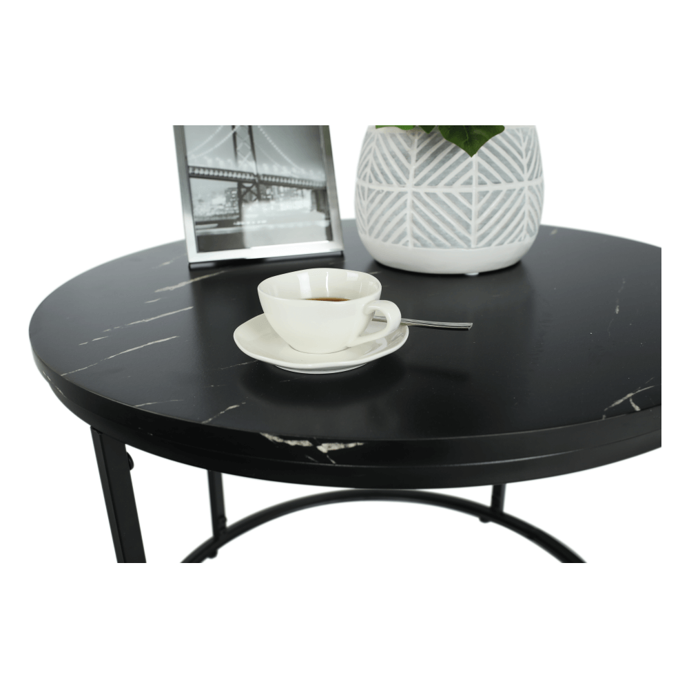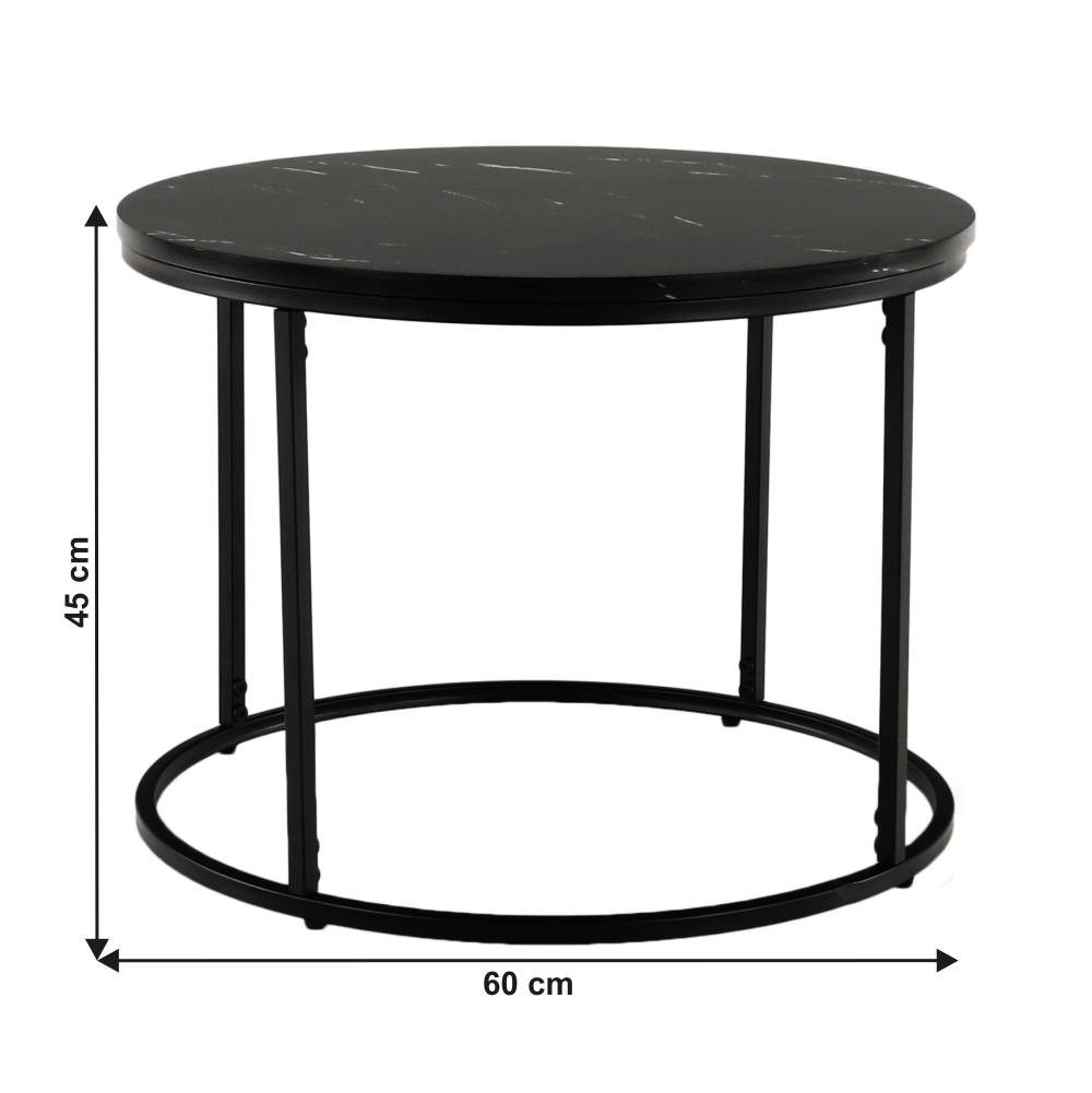 Konferenčný stolík GAGINMateriál: MDF/kovFarba: čierny mramor/čiernaRozmery (priemer x V): 60x45 cmDodávané v demonte.