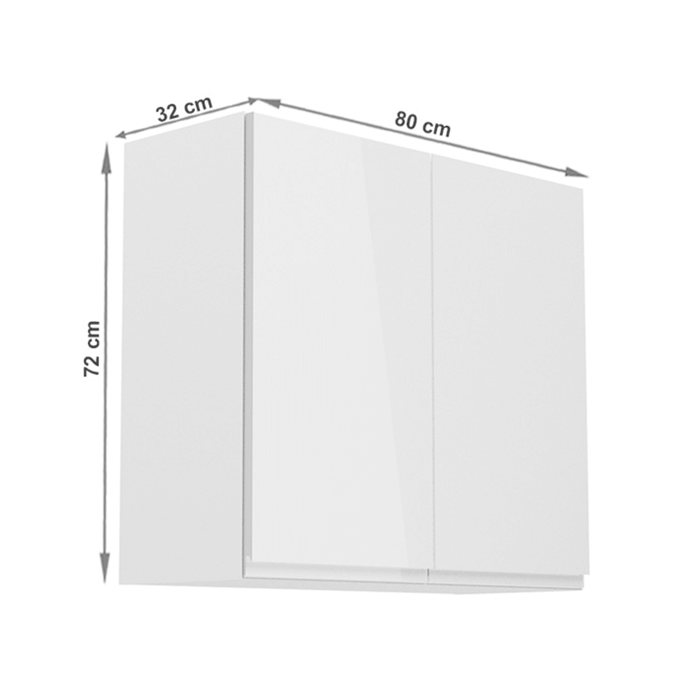 Horná skrinka, Aurora G80Prevedenie: DTD laminová/MDFFarba: biela/biela lakovaná extra vysoký lesk Rozmery (ŠxHxV): 80x32x72 cmHrúbka materiálu: 15 mmSystém tichého zatvárania dvierokPracovná doska nie je súčasťou skriniek. Je možné si doobjednať pracovnú dosku v prevedení dub artisan s hrúbkou 38 mm za 56 eur/bm. Možnosť dokúpiť drez LAY ON. Spodné skrinky sú dodávané vrátane dolnej lišty, avšak presný rozmer, ktorý potrebujete, je potrebné uviesť do poznámky v objednávke. Ak rozmer neuvediete, môže sa stať, že vám sokel nebude dodaný. Ku každej dolnej skrinke, okrem D25PZ, je potrebné doobjednať 2 ks úchytok na sokel - cena 1Eur/2ks.