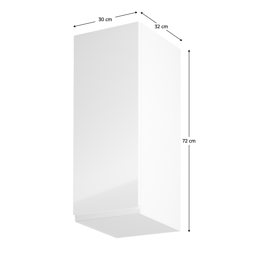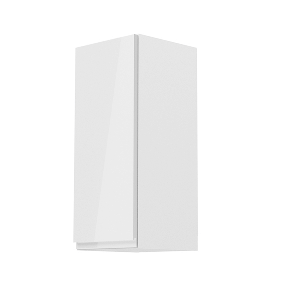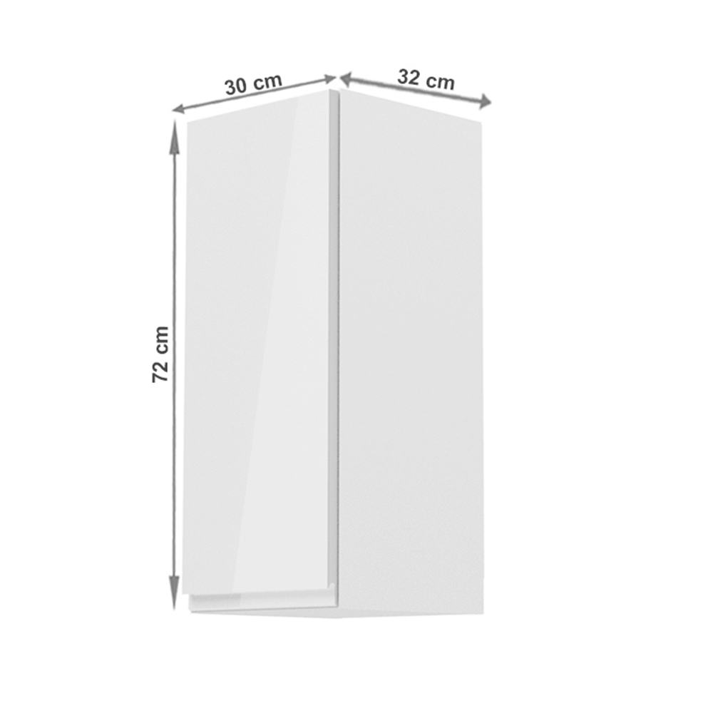 Horná skrinka, Aurora G30, ľaváPrevedenie: DTD laminová/MDFFarba: biela/biela lakovaná extra vysoký lesk Rozmery (ŠxHxV): 30x32x72 cmHrúbka materiálu: 15 mmSystém tichého zatvárania dvierokPracovná doska nie je súčasťou skriniek. Je možné si doobjednať pracovnú dosku v prevedení dub artisan s hrúbkou 38 mm za 56 eur/bm. Možnosť dokúpiť drez LAY ON. Spodné skrinky sú dodávané vrátane dolnej lišty, avšak presný rozmer, ktorý potrebujete, je potrebné uviesť do poznámky v objednávke. Ak rozmer neuvediete, môže sa stať, že vám sokel nebude dodaný. Ku každej dolnej skrinke, okrem D25PZ, je potrebné doobjednať 2 ks úchytok na sokel - cena 1Eur/2ks.