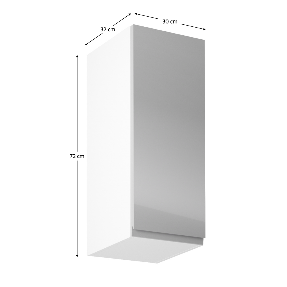 Horná skrinka, Aurora G30Prevedenie: DTD laminovaná/MDFFarba: biela/sivá lakovaná extra vysoký lesk Rozmery (ŠxHxV): 30x32x72 cmHrúbka materiálu: 15 mmSystém tichého zatvárania dvierokPracovná doska nie je súčasťou skriniek. Je možné si doobjednať pracovnú dosku v prevedení dub artisan s hrúbkou 38 mm za 56 eur/bm. Možnosť dokúpiť drez LAY ON. Spodné skrinky sú dodávané vrátane dolnej lišty, avšak presný rozmer, ktorý potrebujete, je potrebné uviesť do poznámky v objednávke. Ak rozmer neuvediete, môže sa stať, že vám sokel nebude dodaný. Ku každej dolnej skrinke, okrem D25PZ, je potrebné doobjednať 2 ks úchytok na sokel - cena 1Eur/2ks.