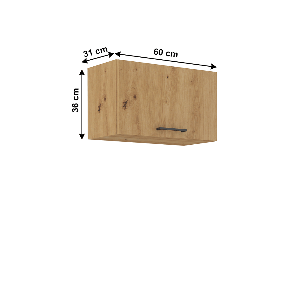 Materiál: laminovaná DTDFarba: dub artisanRozmery (ŠxHxV): 60x31x36 cmHrúbka materiálu: 1,6 cmJednodverováS úchytkouÚchytka: 19,2 cmTichý doraz dvierokVnútro skrinky je bieleModerný dynamický dizajnDodávané v demontePracovnú dosku dub artisan s hrúbkou 3,8cm je možné doobjednať za cenu 65 EURMožnosť dokúpiť univerzálny drez LAY ON.
