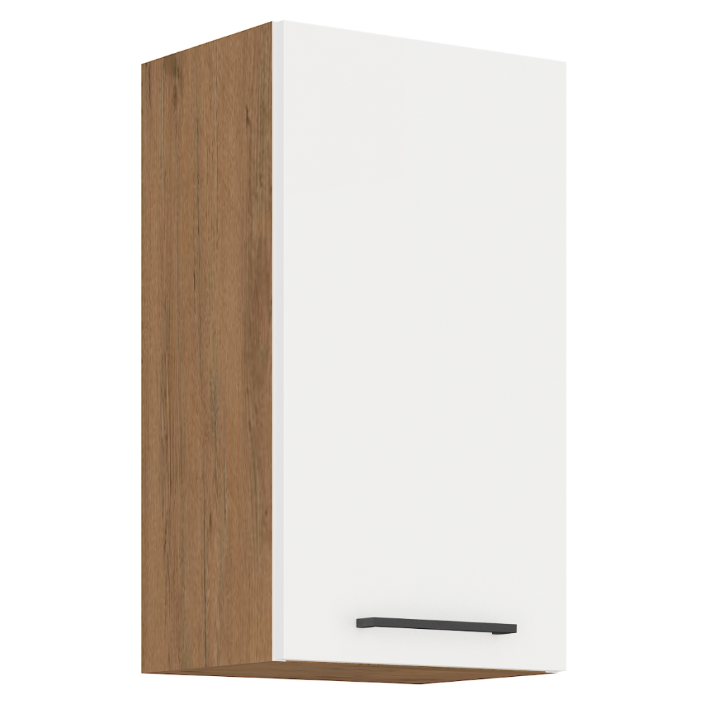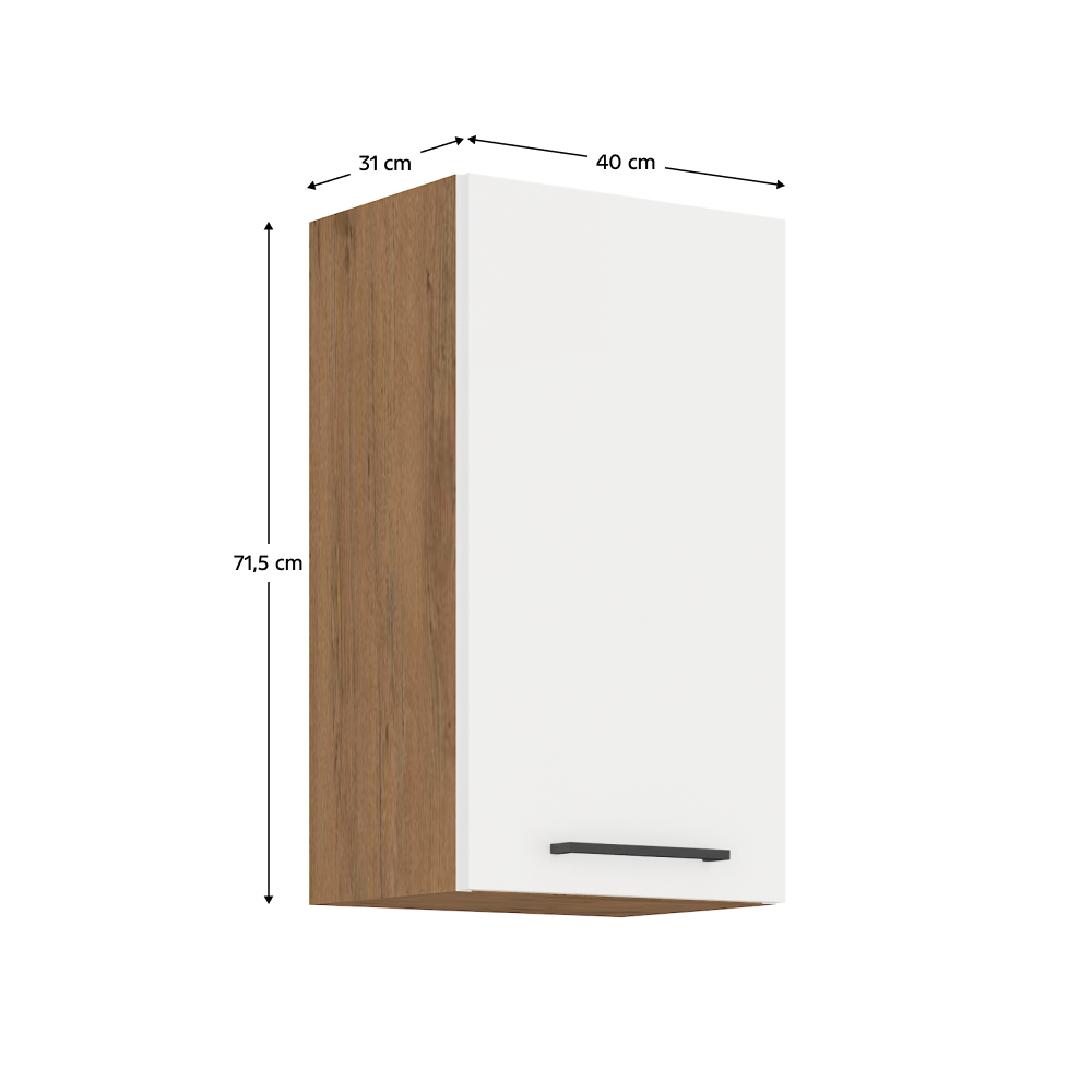 Horná skrinka VEGA 40 G-72 1FMateriál: DTD laminovaná/MDFFarba: dub lancelot/biela extra vysoký lesk HGRozmery (ŠxHxV): 40x31x71,5 cmDodávané v demonteMožnosť dokúpenia pracovnej dosky dub lancelot v cene 55 Eur/bm. Možnosť dokúpiť univerzálny drez LAY ON.