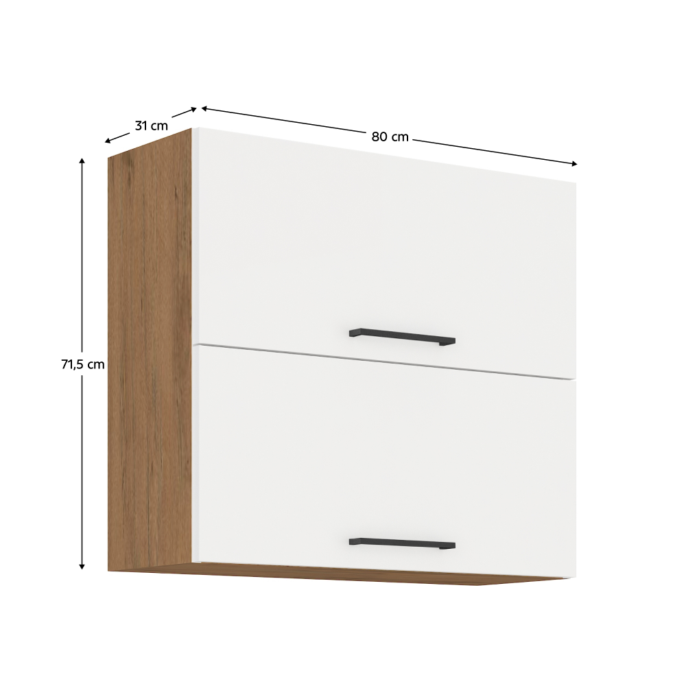 Horná skrinka VEGA 80 GU-72 2FMateriál: DTD laminovaná/MDFFarba: dub lancelot/biela extra vysoký lesk HGRozmery (ŠxHxV): 80x71,5x31 cmDodávané v demonteMožnosť dokúpenia pracovnej dosky dub lancelot v cene 55 Eur/bm. Možnosť dokúpiť univerzálny drez LAY ON.