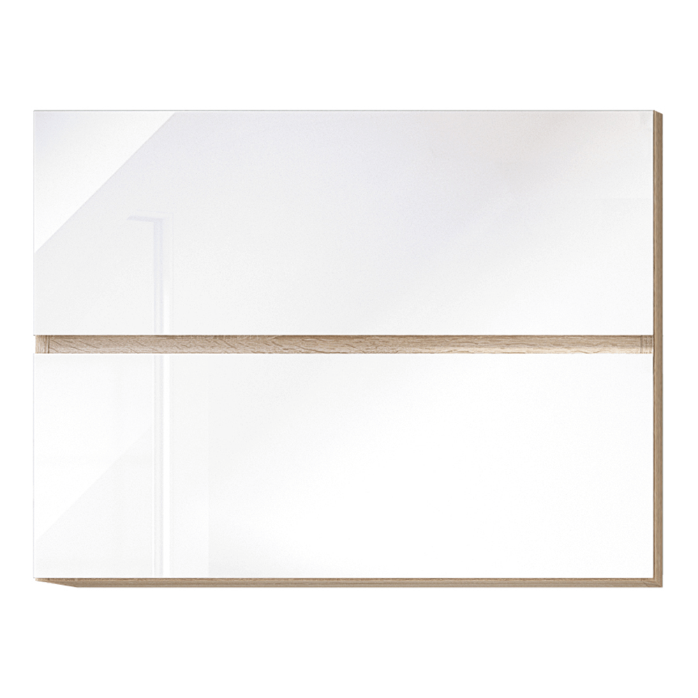 KONDELA Horná skrinka G 80 U, vysoký biely lesk/dub sonoma, LINE