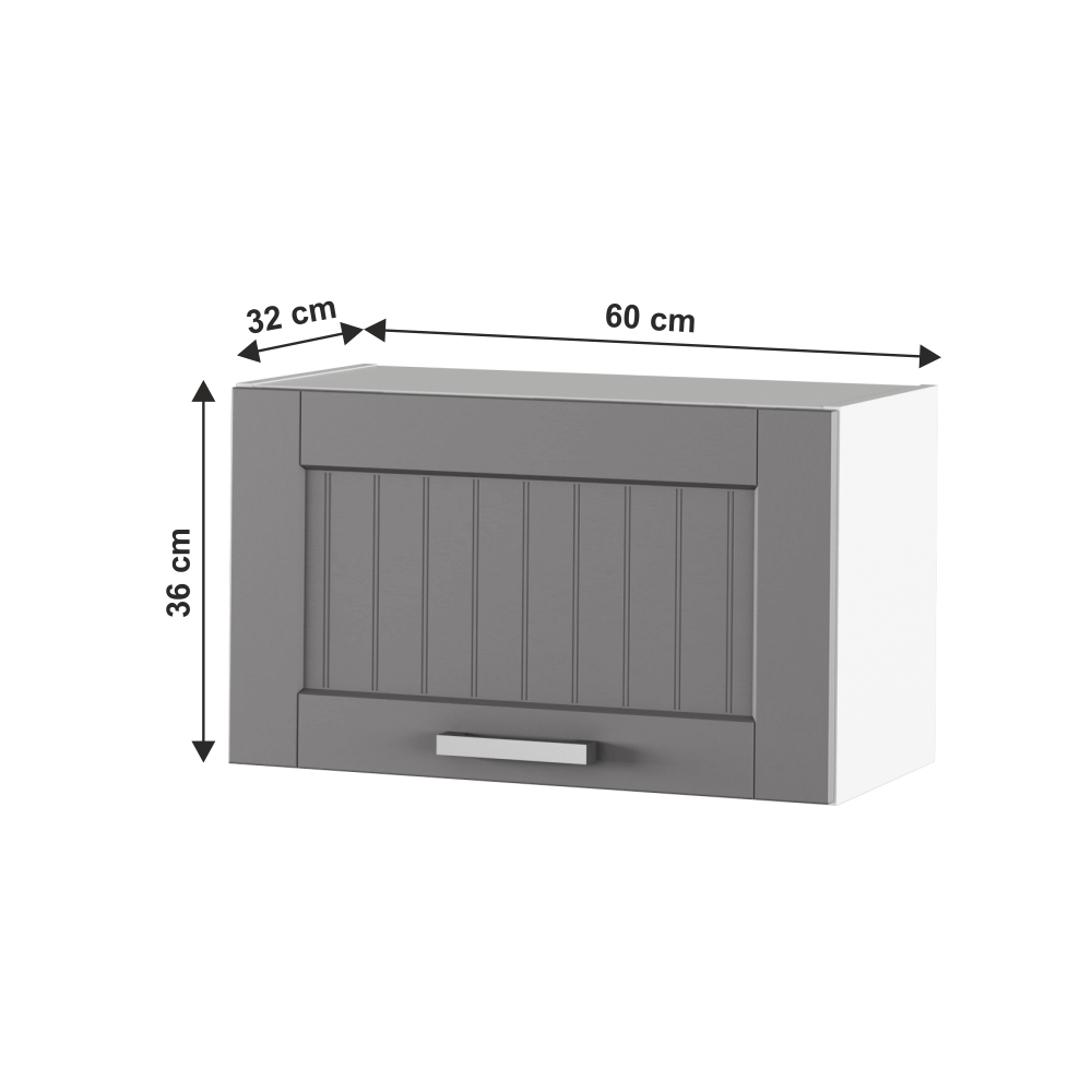 Materiál skrinka: DTD laminovaná/MDFFarba skrinka: tmavosivá/bielaMateriál úchytky: kovFarba úchytky: matný chrómRozmery (ŠxHxV): 60x32x36 cmHrúbka materiálu: 16 mmS dvierkamiVýklopné dvierkaS kovovou úchytkouKvalitný slovenský výrobokDodávané v demonteSkrinky sú dodávané bez pracovnej dosky. Pracovnú dosku v prevedení gold craft oak v hrúbke 38 mm je možné doobjednať v cene 45 Eur/1 bm.