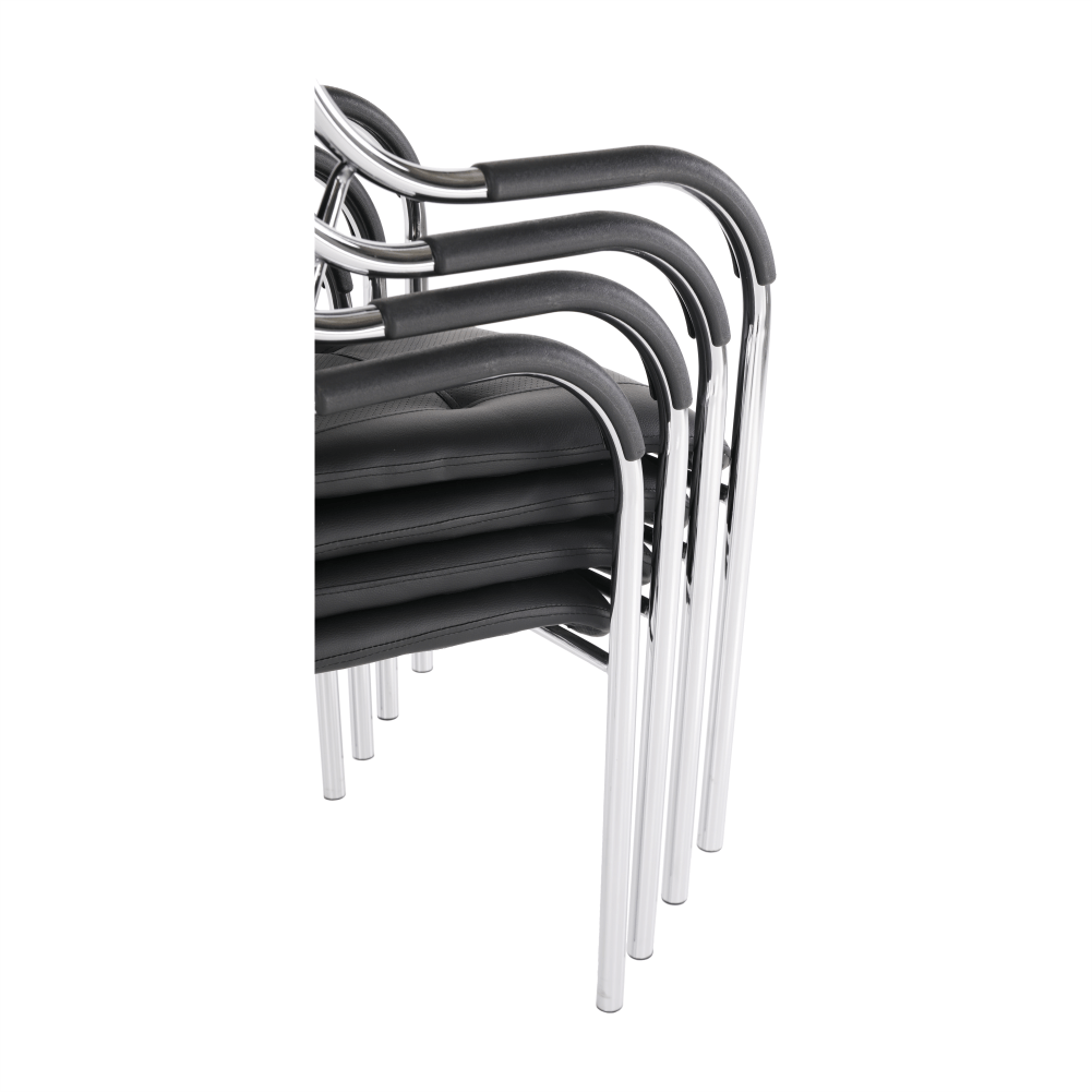 Materiál čalúnenie: ekokožaOderuodolnosť textílie podľa testu Martindale: 100 000 oderovFarba: čierna/chrómRozmery (ŠxHxV): 52x55x85 cmVýška sedu : 41 cmHĺbka sedu : 46 cmŠírka sedu: 43 cmŠírka chrbtovej opierky: 45 cmVýška chrbtovej opierky: 43,5 cmVýška od zeme po opierku na ruky: 63,5 cmNosnosť: 110 kgJeden stoh obsahuje max. 8 ks stoličiekVýška stohu pri 8 ks stoličiek je 120 cmDodávané v monte