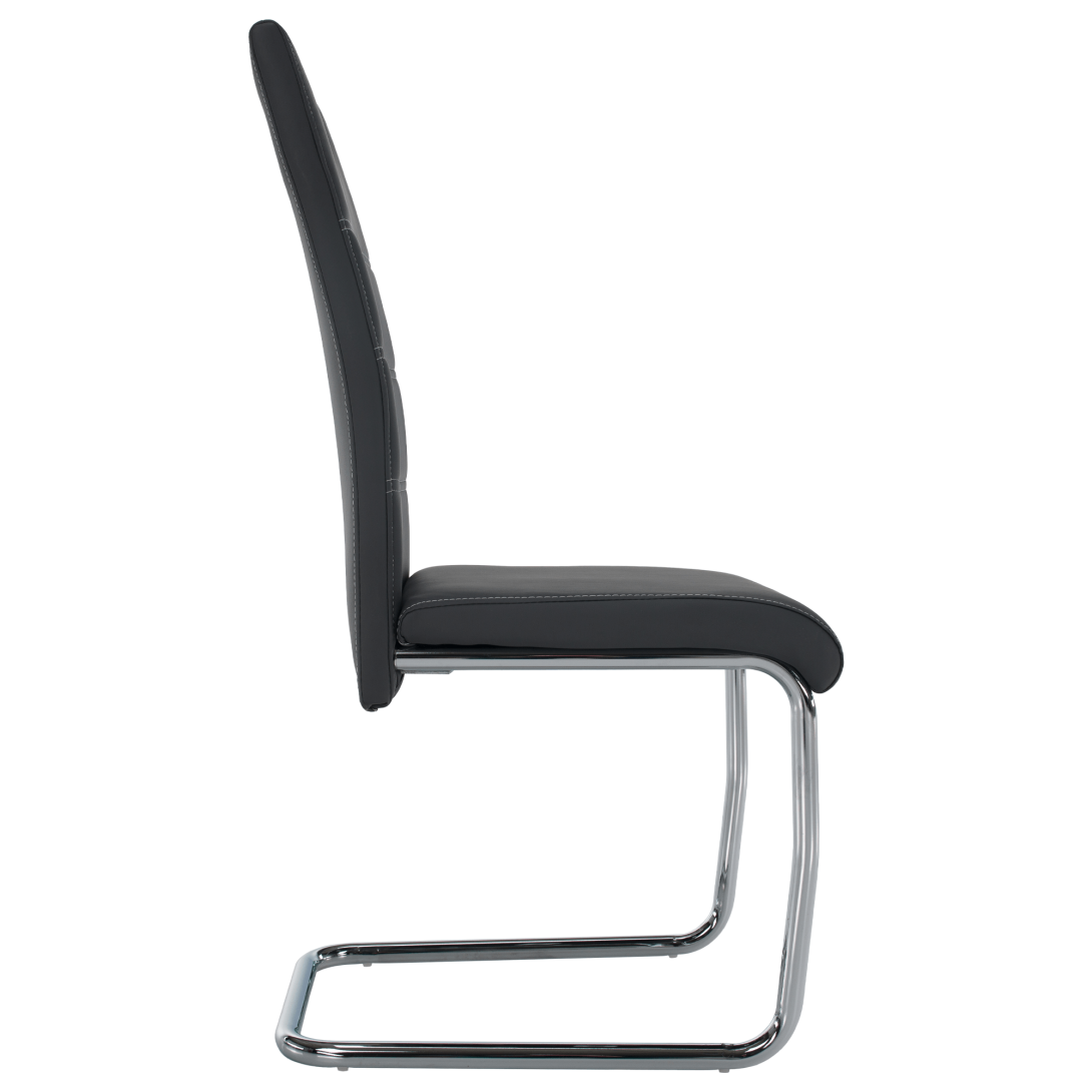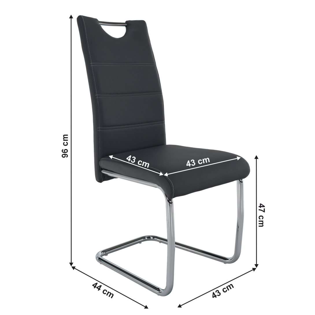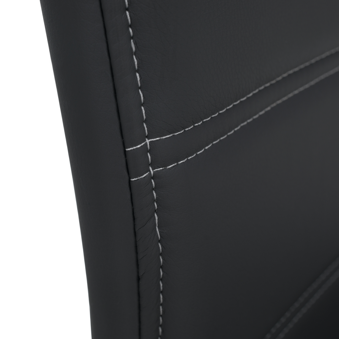 Jedálenská stolička,Materiál: ekokoža / chrómOderuodolnosť textílie podľa testu Martindale: 100 000 oderovFarba: tmavosivá/svetlé šitieRozmery (ŠxHxV): 44x56,5x98,5 cm,Výška sedu: 47 cm.Dodávané v demonte.Nosnosť: 110 kg