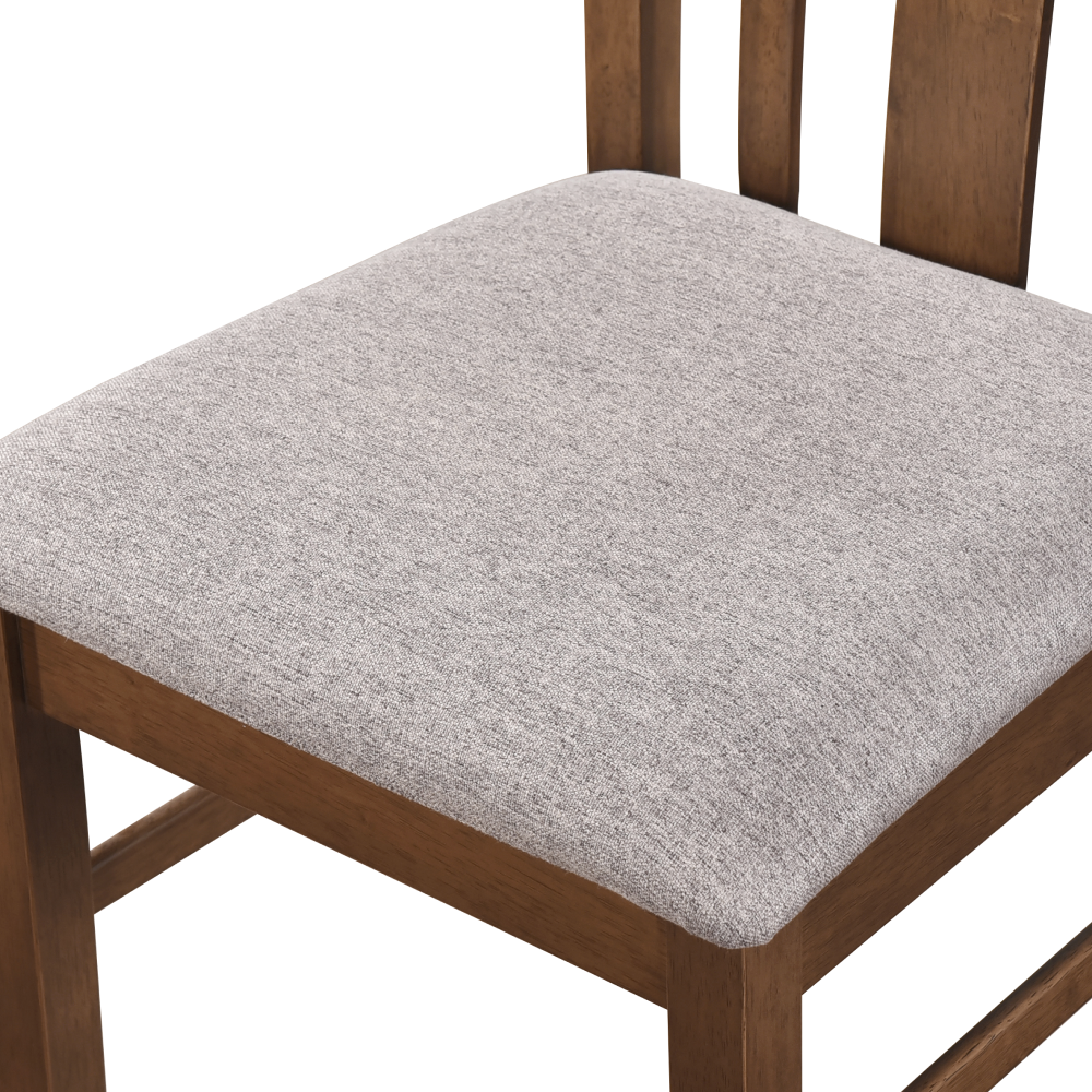 Materiál: kaučukové drevo/MDF/dyha/látkaFarba: orech/béžováRozmery stôl (ŠxHxV): 110x70x75,2 cmRozmery stolička (ŠxHxV): 51,9x43x94 cmVýška sedu: 47,2 cmHĺbka sedu: 40 cmNosnosť stola: 100 kgNosnosť stoličky: 100 kgJedálenský set1 stôl4 stoličkyPre 4 osobyDodávané v demonte