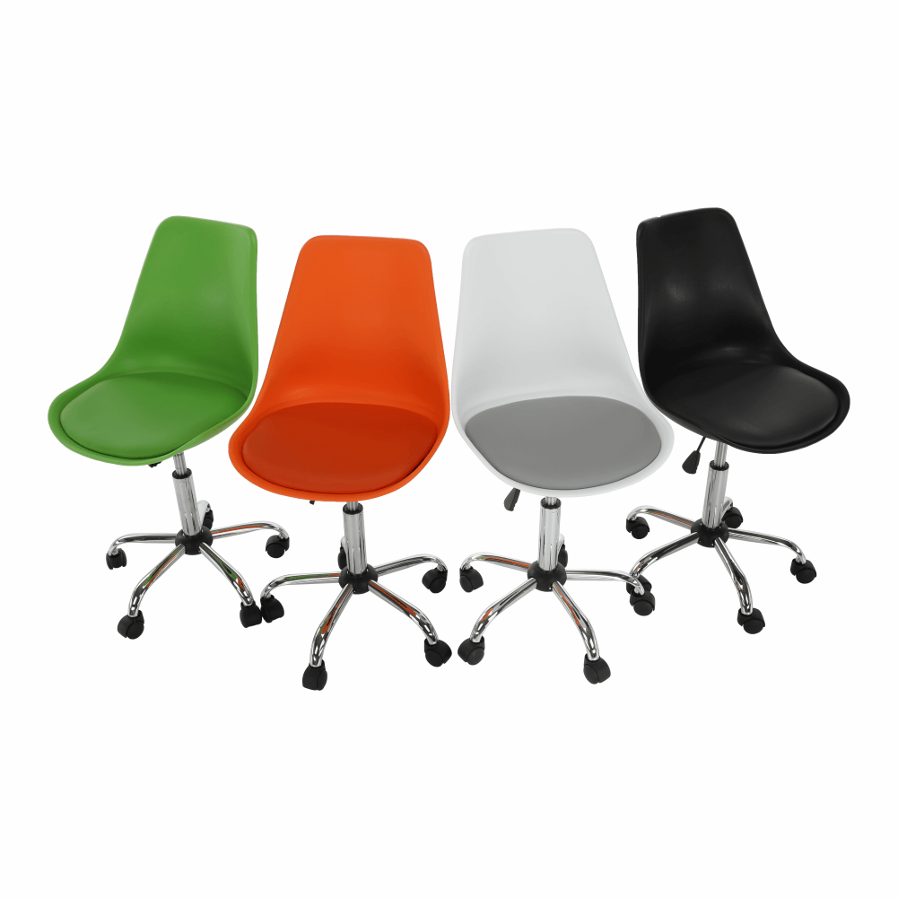 Materiál: plast/ekokoža/chrómOderuodolnosť textílie podľa testu Martindale: 100 000 oderovFarba: čierna/tmavosivá/chrómovanáRozmery (ŠxHxV): 48x56x81-90 cmNastaviteľná výška seduVýška sedu: 47-56 cmHĺbka sedu: 41 cmNosnosť: 100 kgErgonomický tvar sedadlaNa kolieskachDodávané v demonte