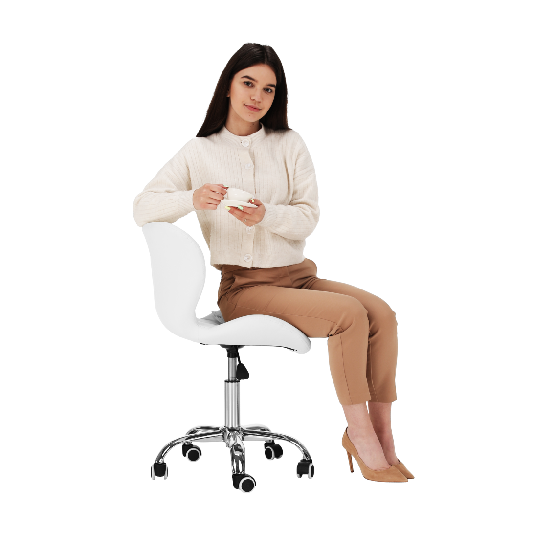Materiál čalúnenie: ekokožaOderuodolnosť textílie podľa testu Martindale: 100 000 oderovFarba: bielaMateriál podstava: kovFarba: chrómRozmery (ŠxHxV): 47x56x73-84 cmVýška sedu: 40-52 cmHĺbka sedu: 37 cmVýška chrbtovej opierky: 32 cmŠírka chrbtovej opierky: 42 cmMaximálna nosnosť: 110 kgOtočnéNastaviteľná výška seduUniverzálne kolieska vhodné na mäkké aj tvrdé podlahyDodávané v demonte