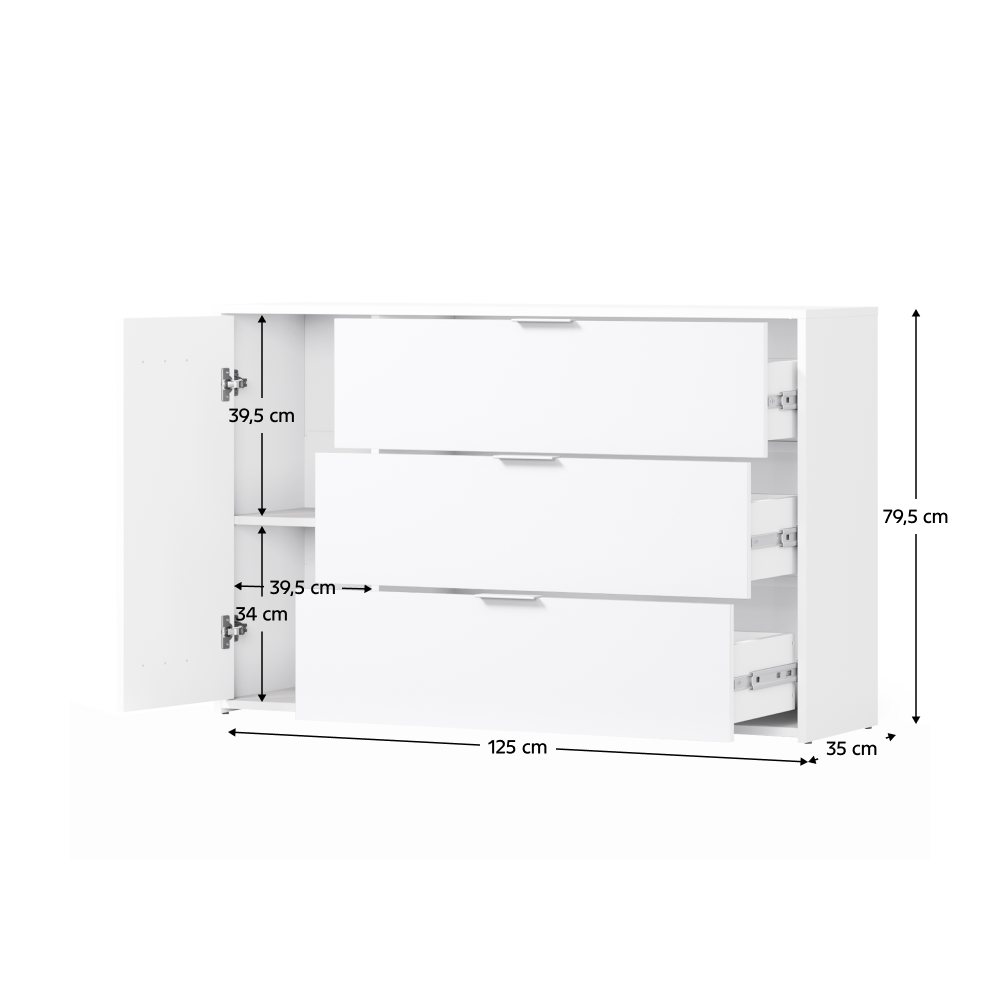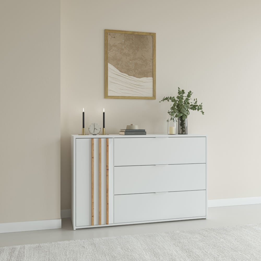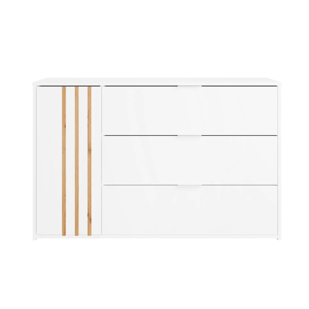 KONDELA Komoda, 1D3S, biela/dub artisan, FLORENS