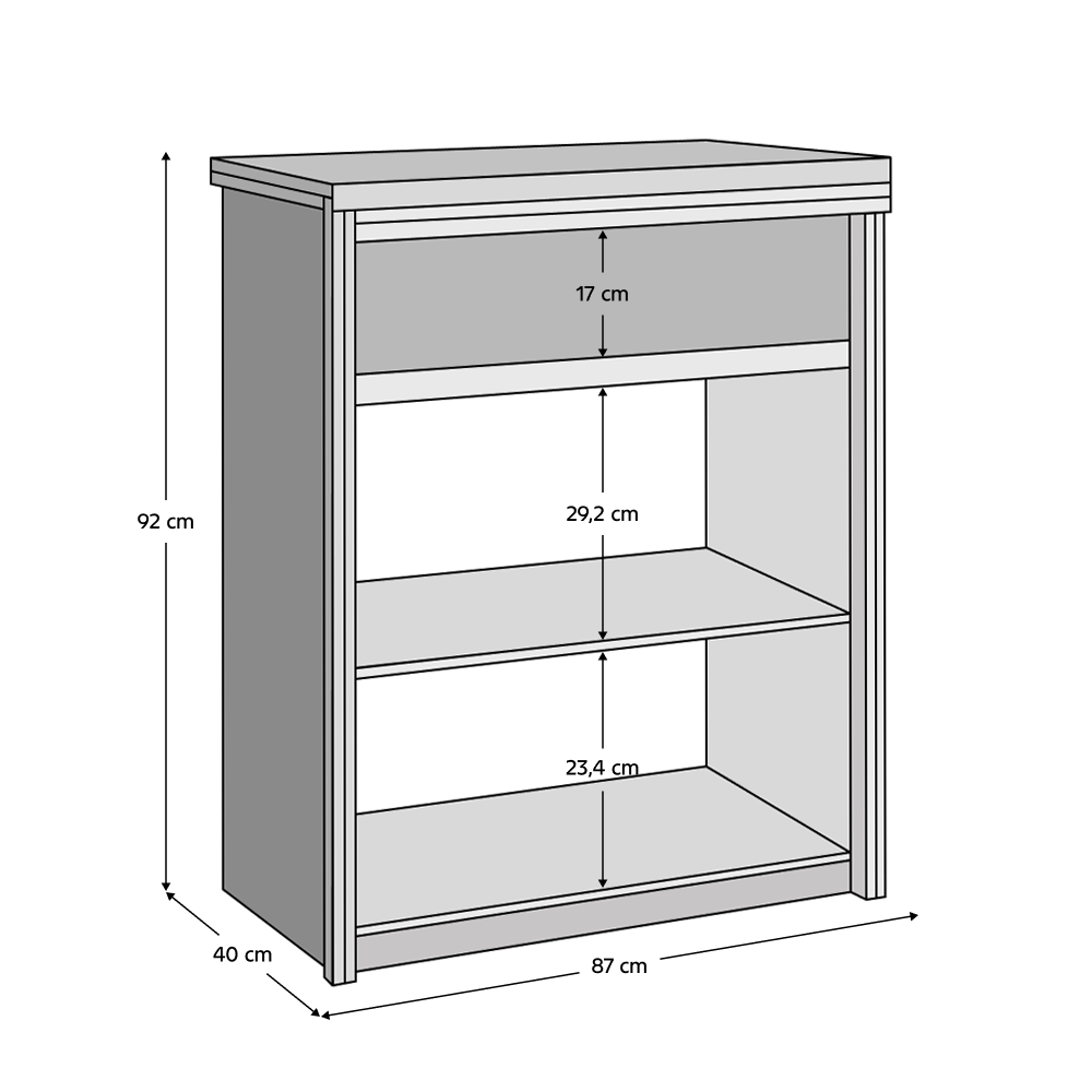 Komoda 2D1S NORTY TYP 9Materiál: DTD laminovanáPrevedenie: dub sonomaRozmery (ŠxHxV): 87x40x92 cmHrúbka materiálu: 32 mmHrúbka materiálu zvyšné časti: 16 mmDodávané v demonte.