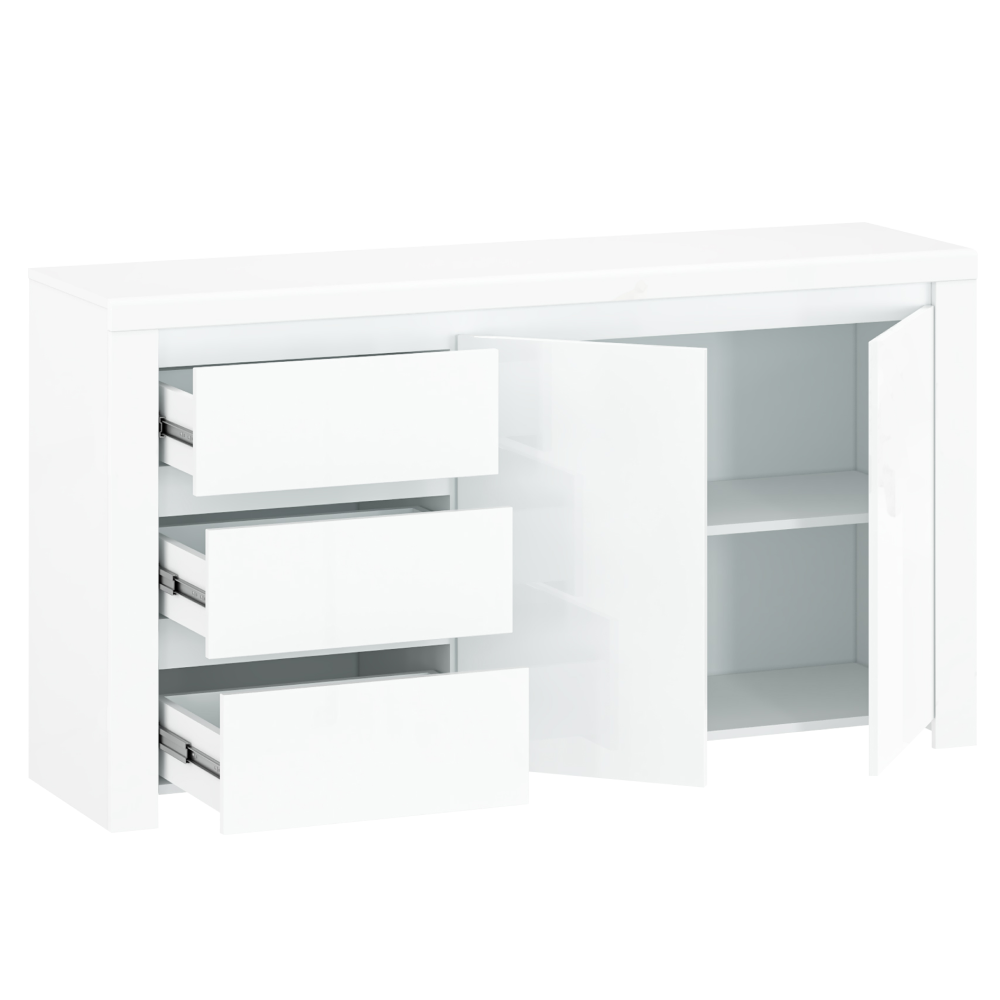 KONDELA Komoda 2D3S, biely lesk, LINDY