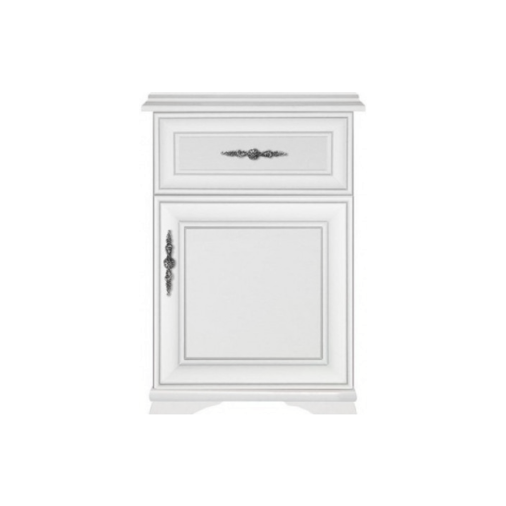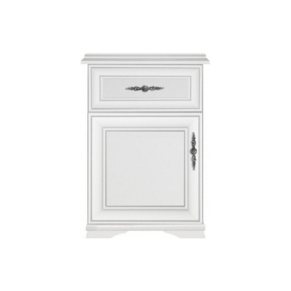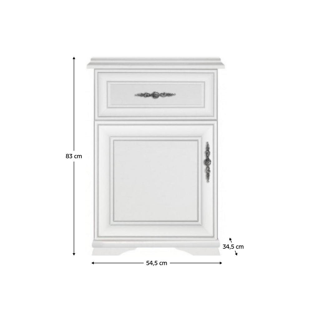 Materiál: DTD laminovanáFarba: alpská bielaRozmery (ŠxHxV): 54,5x34,5x83 cmHrúbka materiálu: 1,6 cmKovové úchytkyFarba úchytiek: antické striebroŠuplíkNosnosť šuplíka: 3 kgJednodverováPolicaNosnosť police: 4 kgNosnosť vrchnej dosky: 15 kgNa nožičkáchVýška nožičiek: 8 cmUniverzálnaDodávané v demonte