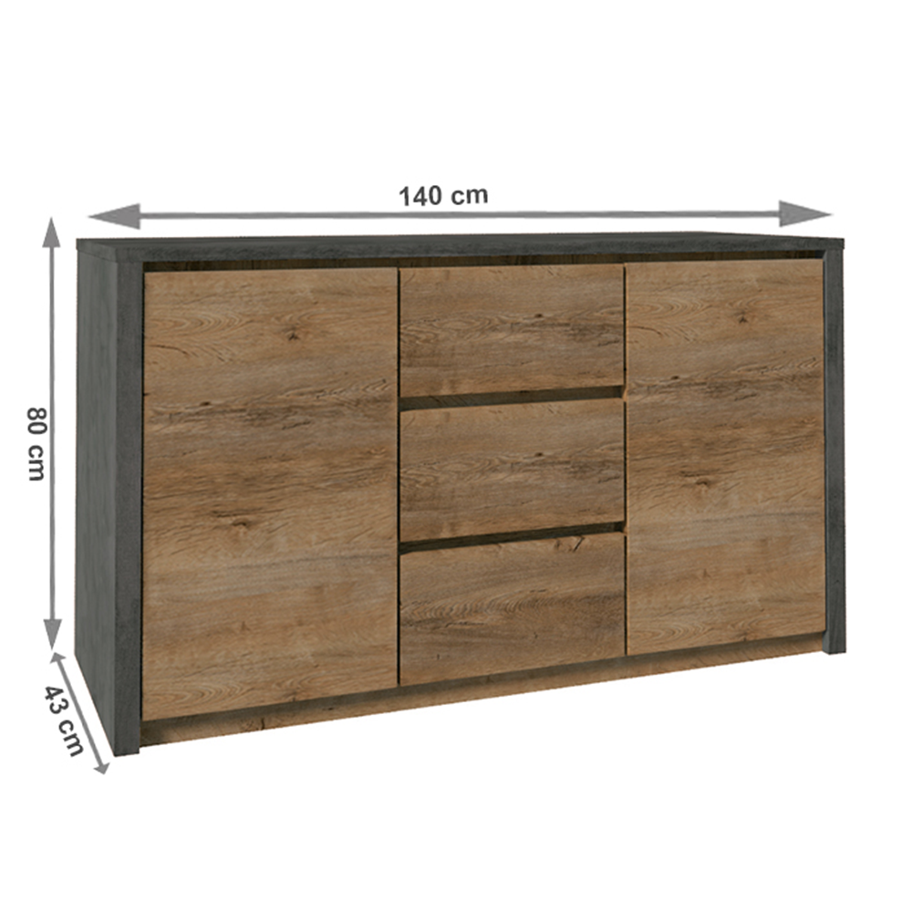 Komoda, MONTANA K2DPMateriál: DTD laminovaná/ABS hranyFarba: dub lefkas tmavý/smooth sivý Rozmery (ŠxHxV): 140x43x80 cmHrúbka materiálu: 15 mmDodávané v demonte.