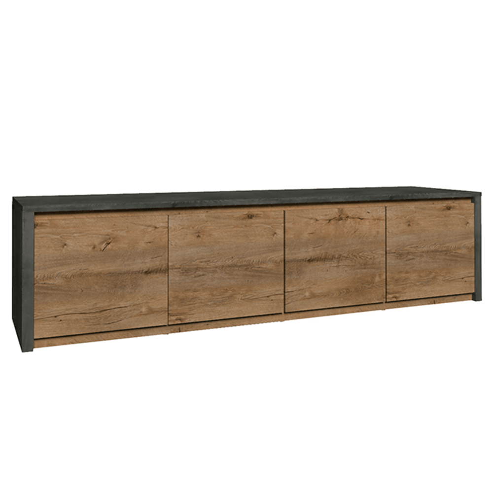 Komoda K4D, MONTANAMateriál: DTD laminovaná, ABS hranyFarebné prevedenie: dub lefkas tmavý/smooth sivýRozmery (ŠxHxV): 170x43x48 cm. Hrúbka materiálu: 15 mmDodávané v demonte.