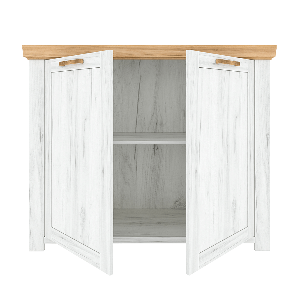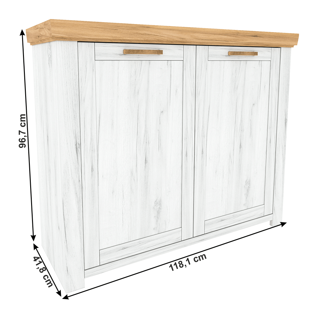 Materiál: DTD laminovaná/MDFFarba: dub craft zlatý/dub craft bielyRozmery (ŠxHxV): 118,1x41,8x96,7 cmHrúbka materiálu korpus: 16 mmHrúbka materiálu vrchná doska: 22 mmHrúbka materiálu dvierka: 19 mmVýška spodného priestoru od podlahy je 4,2 cmDve skrinkyDodávané v demonte