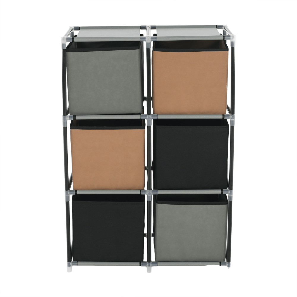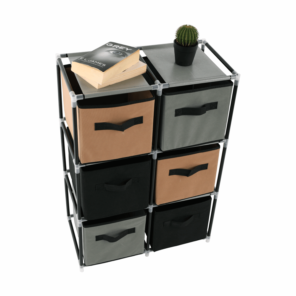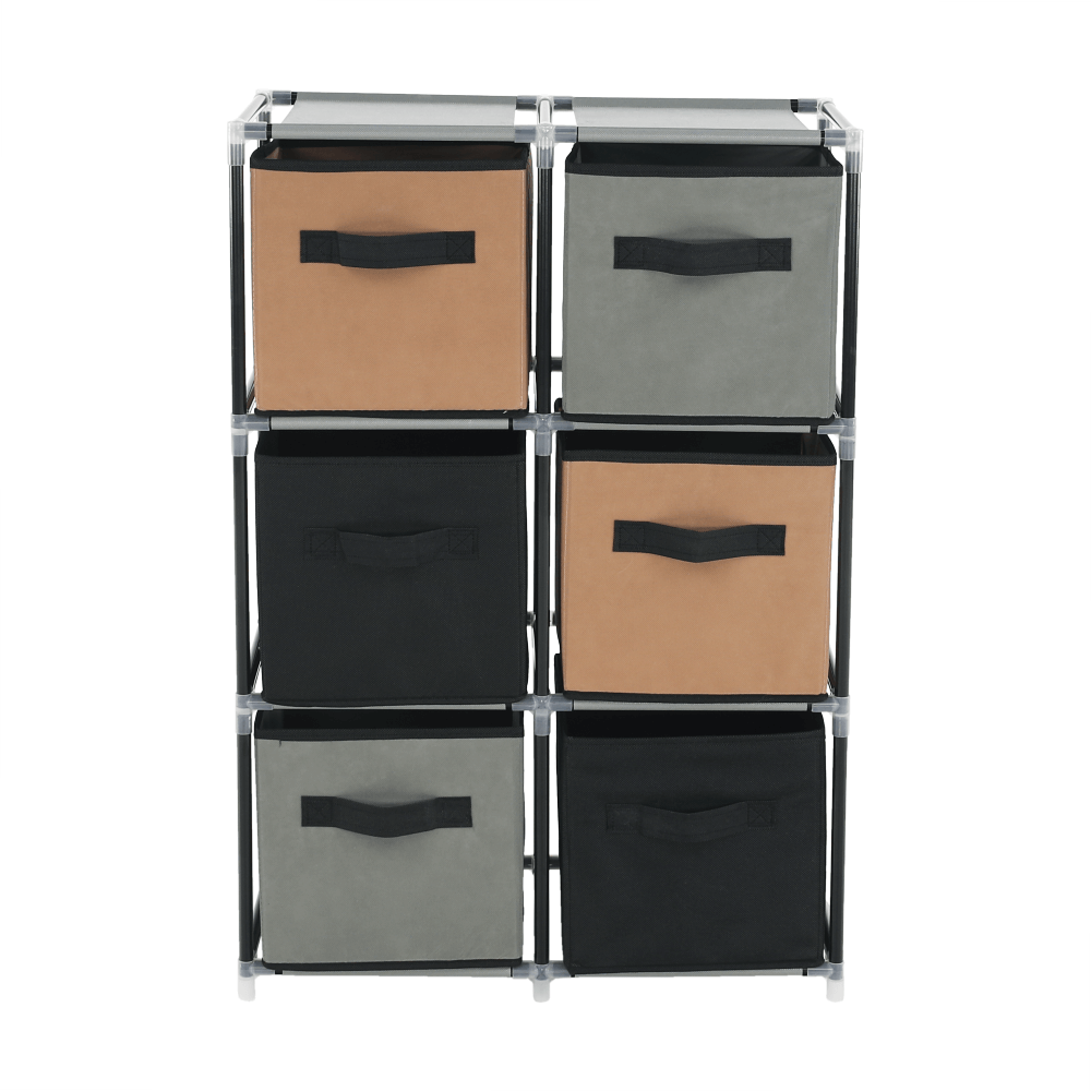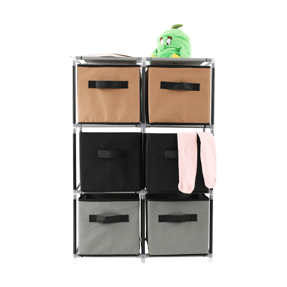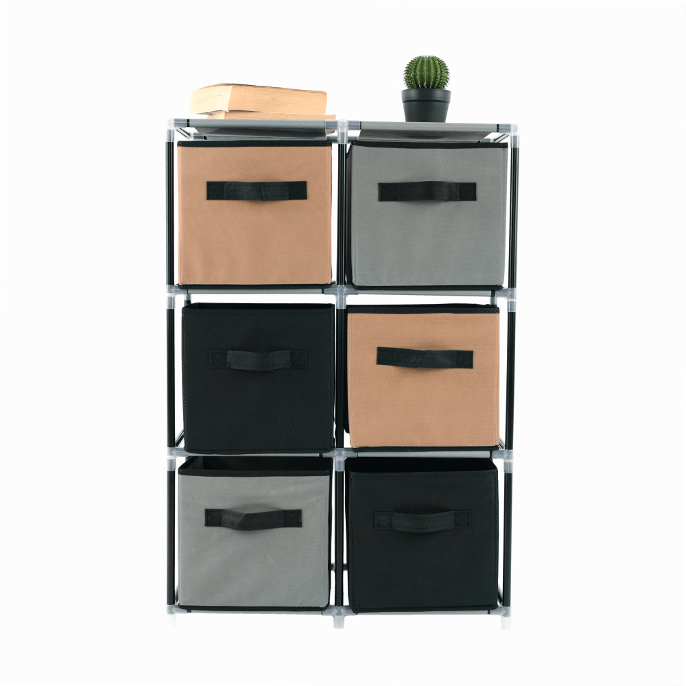 Materiál konštrukcia: kovFarba: čiernaMateriál šuplíky: látkaFarba: hnedá/siváMateriál spojovacie diely: plastRozmery (ŠxHxV): 58x30x83,5 cmŠesť šuplíkovPraktickáKovová konštrukciaLátkové šuplíkyS úchytkamiPlastové spojovacie dielyJednoduchá montážRôzne varianty poskladaniaDodávané v demonte