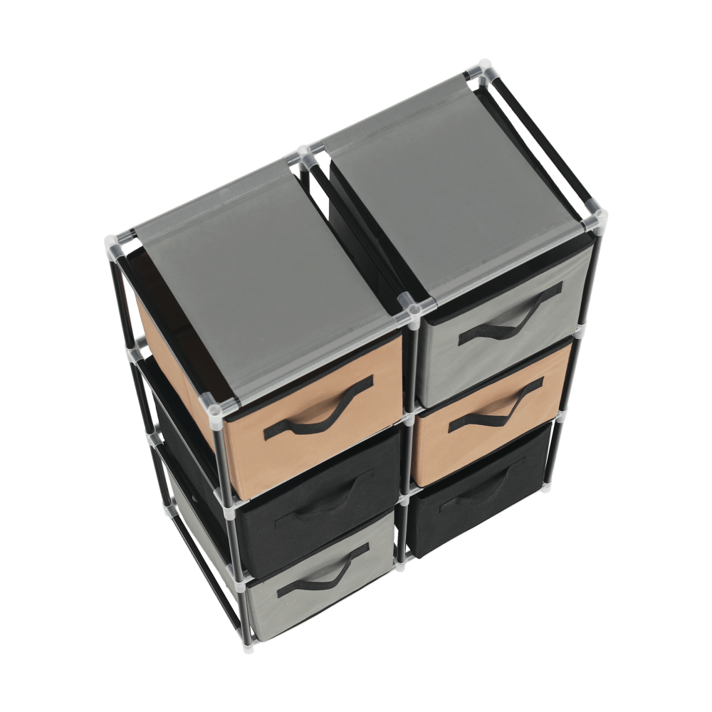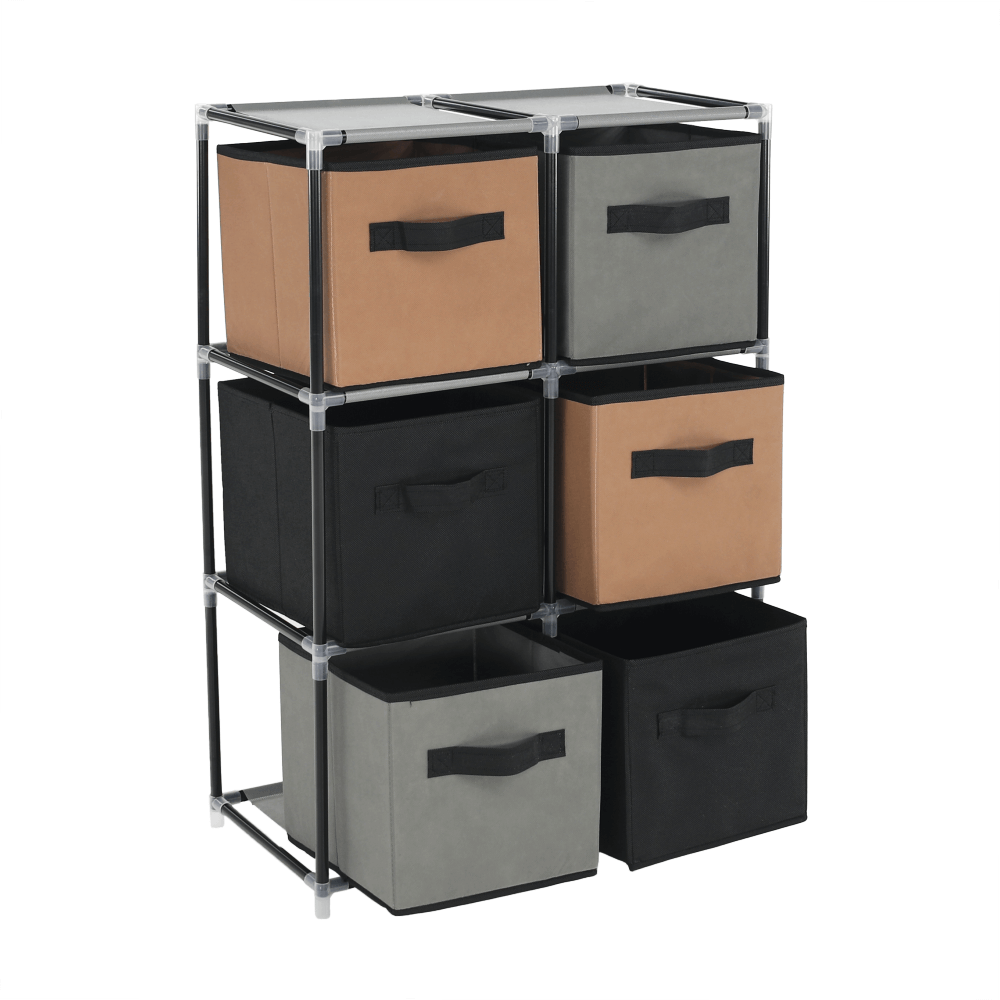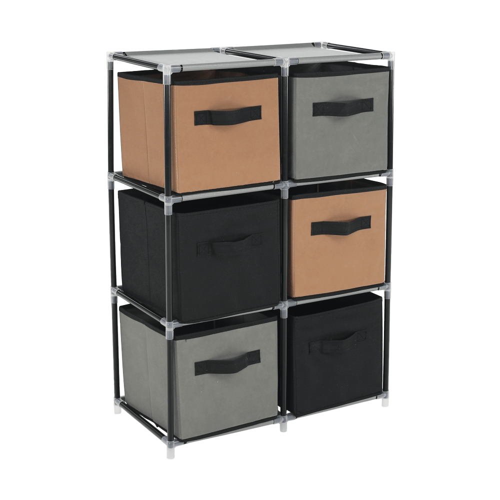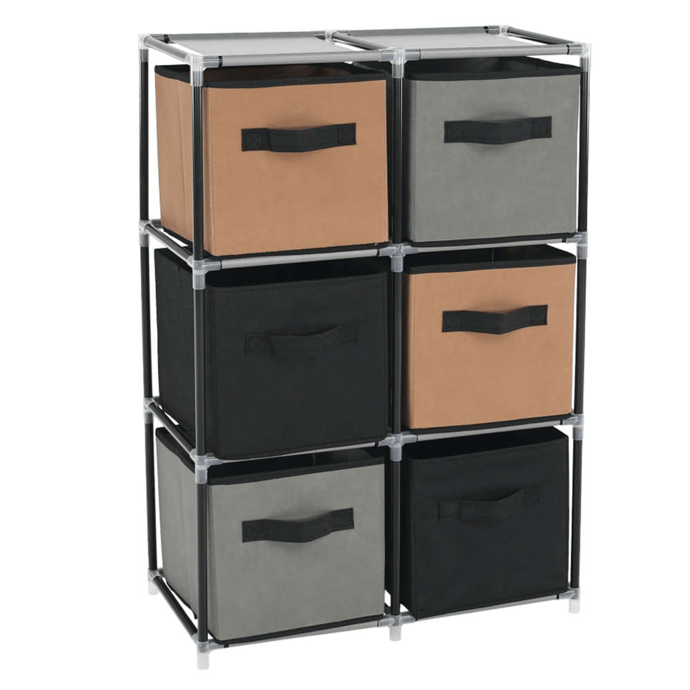 Materiál konštrukcia: kovFarba: čiernaMateriál šuplíky: látkaFarba: hnedá/siváMateriál spojovacie diely: plastRozmery (ŠxHxV): 58x30x83,5 cmŠesť šuplíkovPraktickáKovová konštrukciaLátkové šuplíkyS úchytkamiPlastové spojovacie dielyJednoduchá montážRôzne varianty poskladaniaDodávané v demonte