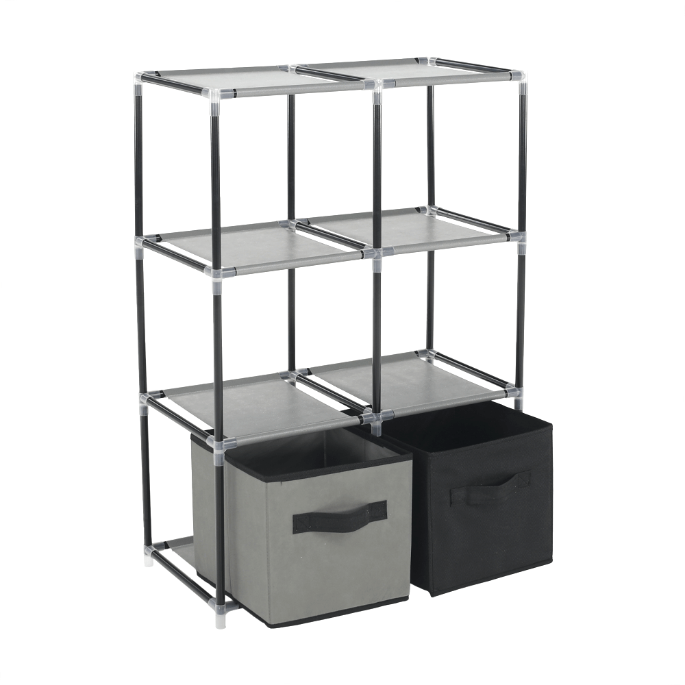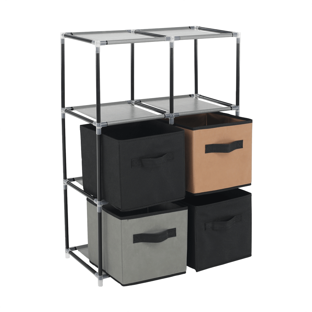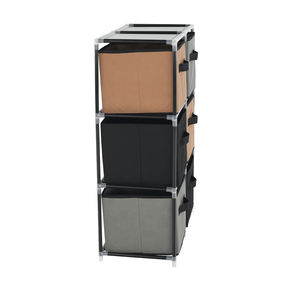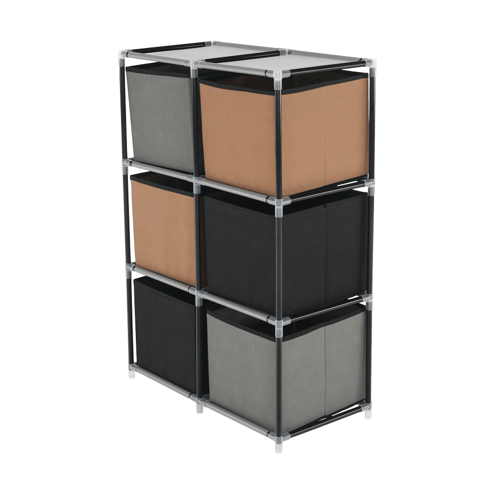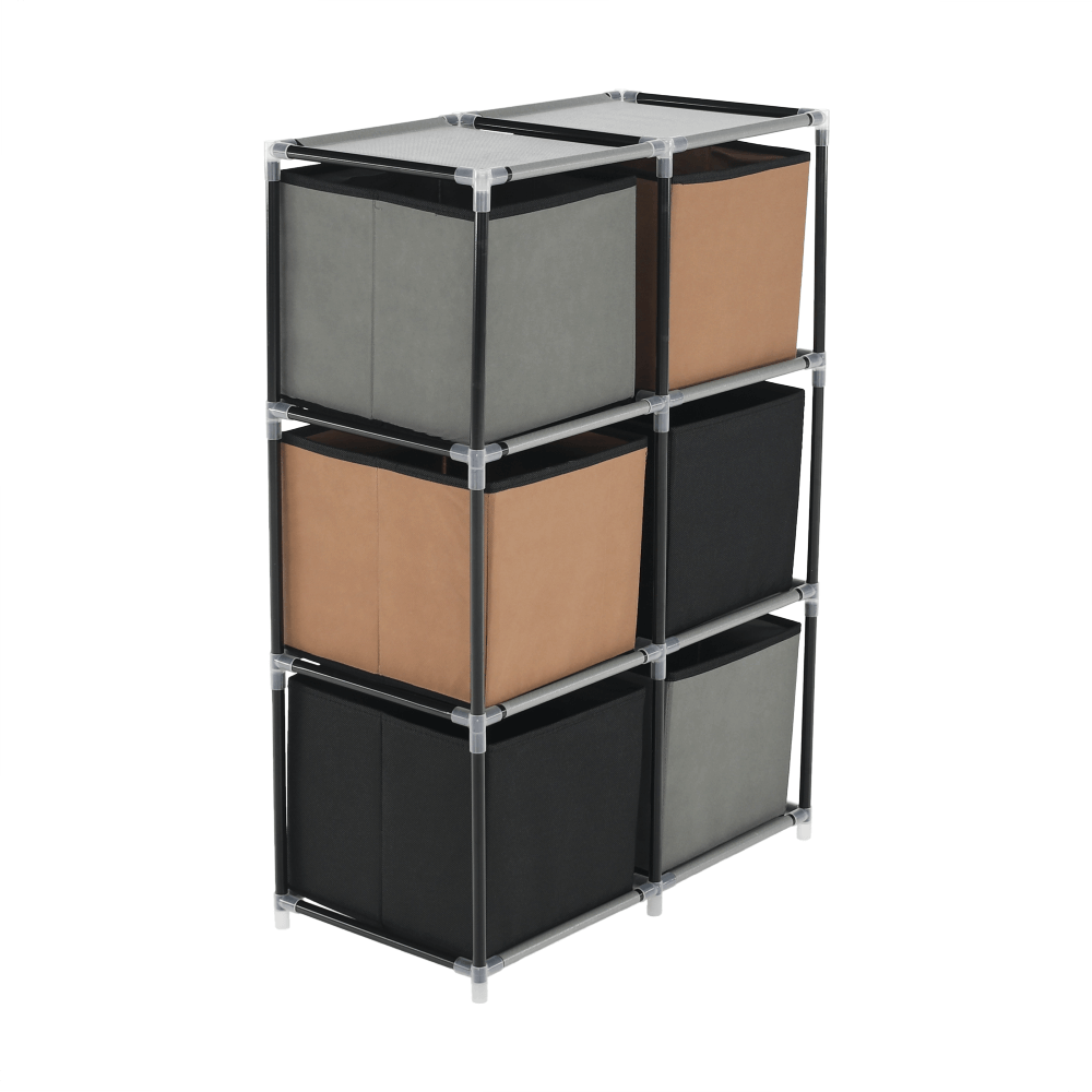 Materiál konštrukcia: kovFarba: čiernaMateriál šuplíky: látkaFarba: hnedá/siváMateriál spojovacie diely: plastRozmery (ŠxHxV): 58x30x83,5 cmŠesť šuplíkovPraktickáKovová konštrukciaLátkové šuplíkyS úchytkamiPlastové spojovacie dielyJednoduchá montážRôzne varianty poskladaniaDodávané v demonte