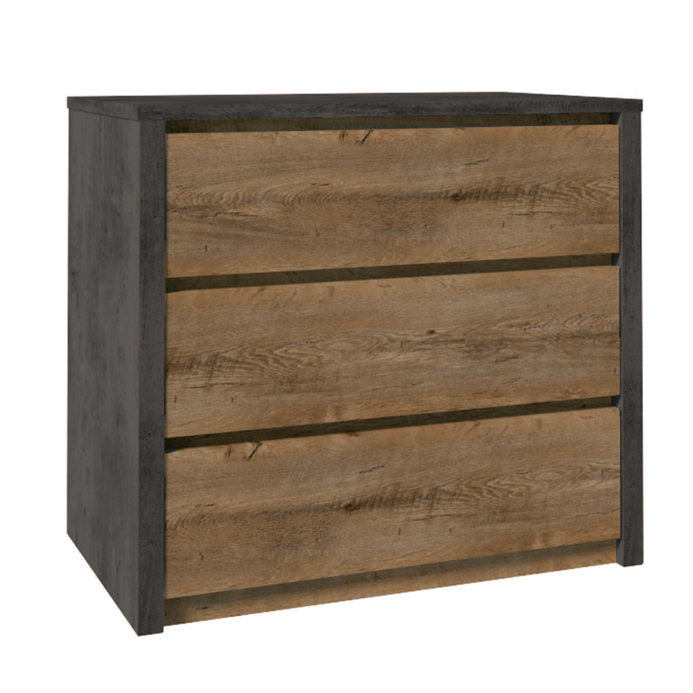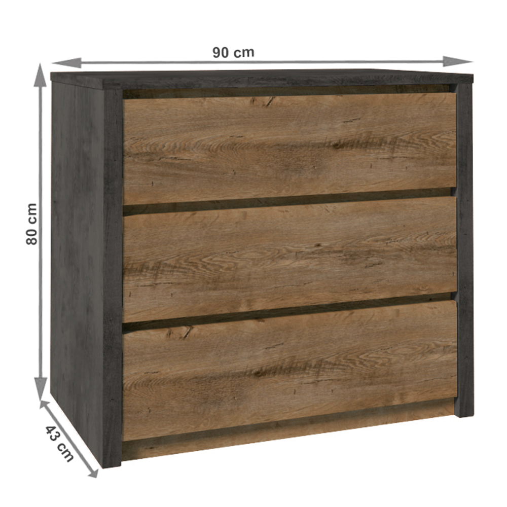 Komoda, MONTANA K3S NEWMateriál: DTD laminovaná, ABS hranyFarebné prevedenie: smooth sivý/dub lefkas tmavýRozmery (ŠxHxV): 90x43x80 cm. Hrúbka materiálu: 15 mmDodávané v demonte.