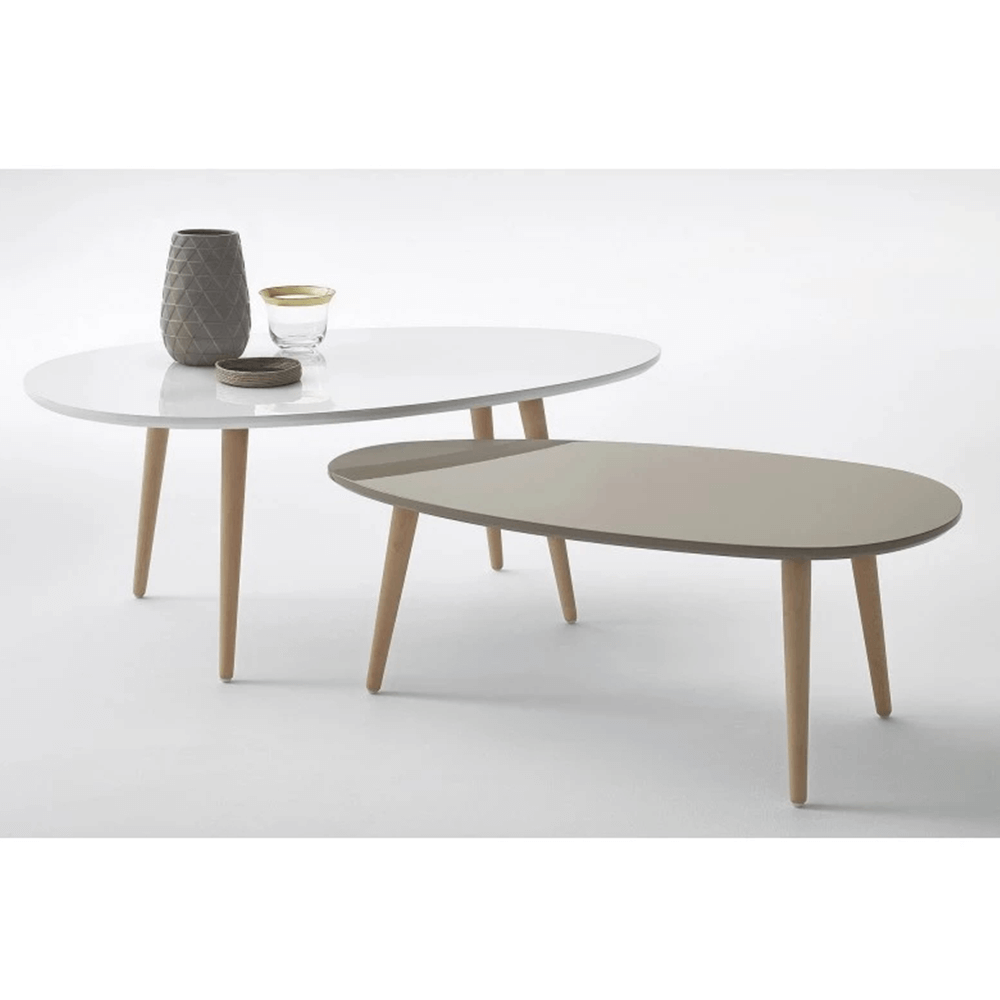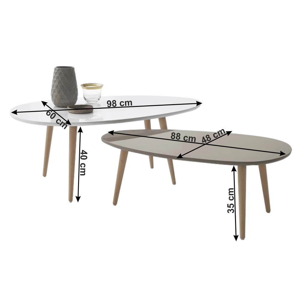 Materiál: MDF/borovicové masívne drevoFarba: biela/sivá/prírodnáVäčší stolík (ŠxHxV): 60x98x40 cmMenší stolík (ŠxHxV): 48x88x35 cmSet dvoch konferenčných stolíkovDodávané v demonte