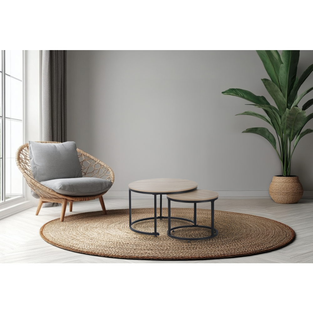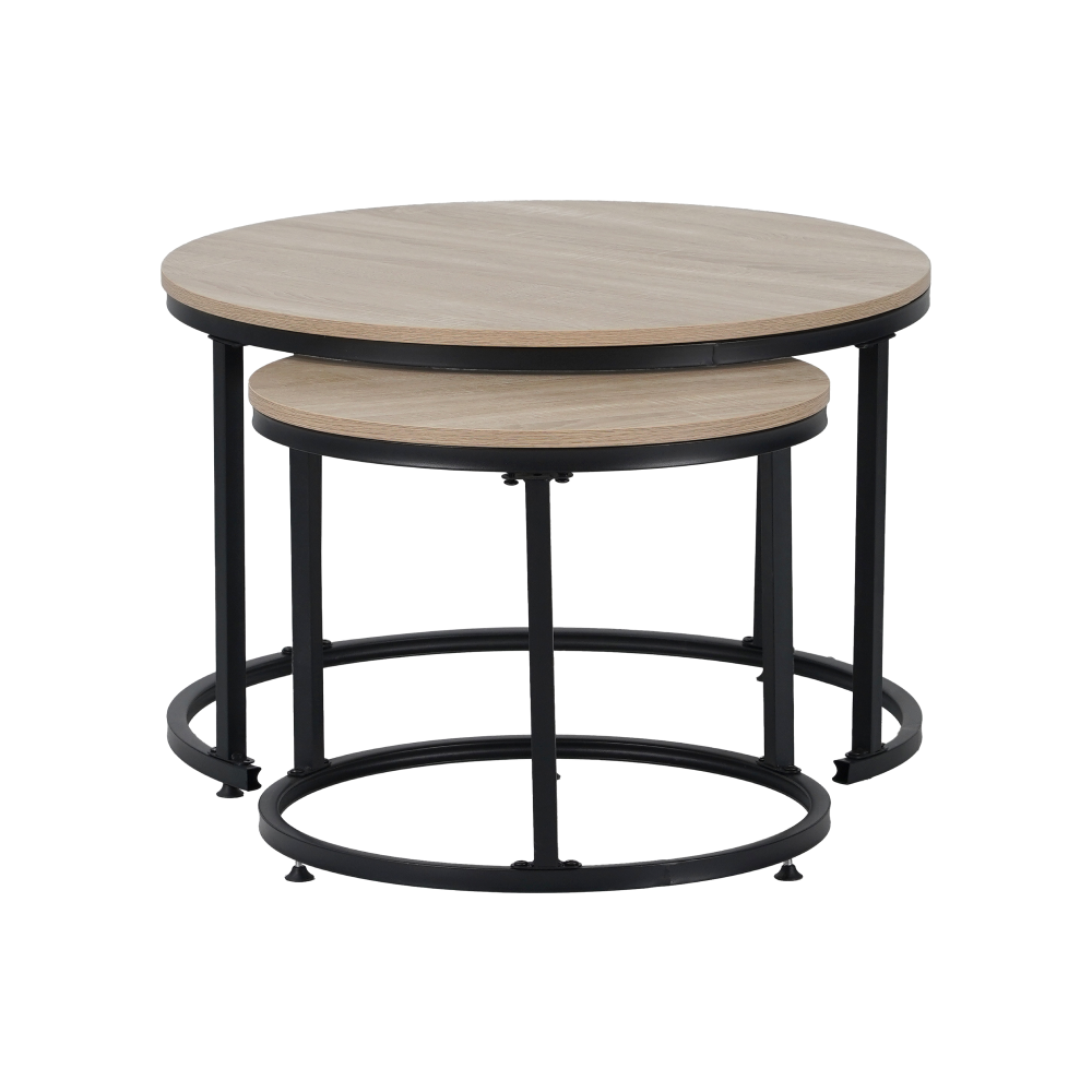 Materiál: fóliovaná DTD/kovFarebné prevedenie: dub sonoma/čiernaRozmery väčšieho stolíka (PxV): 70x45 cmRozmery menšieho stolíka (PxV): 50x40 cmHrúbka platu stola: 1,5 cmSet 2 kusovMožnosť zasunutia menšieho pod väčší stolíkOkrúhlyModerný a štýlovýNosnosť: 30 kgDodávané v demonte