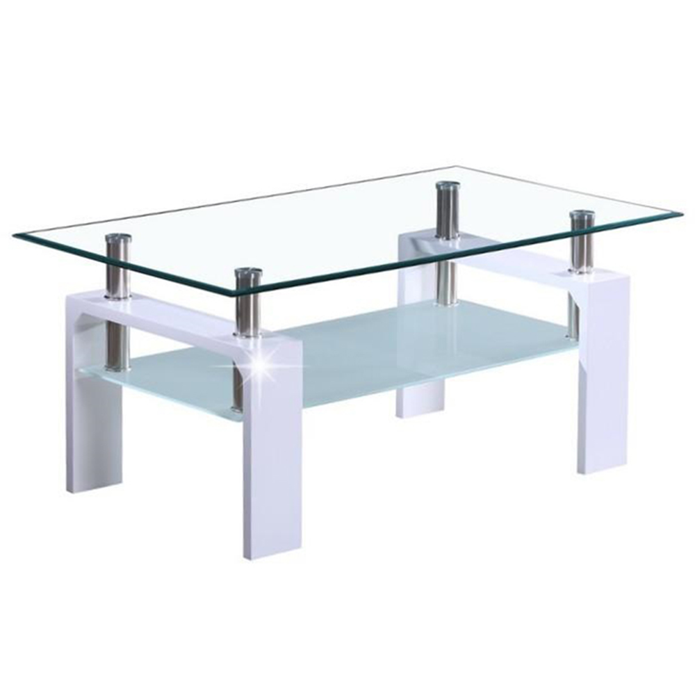KONDELA Konferenčný stolík, biela extra vysoký lesk HG/sklo, LIBOR 2 NEW