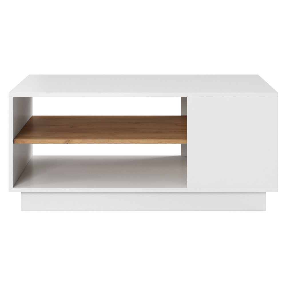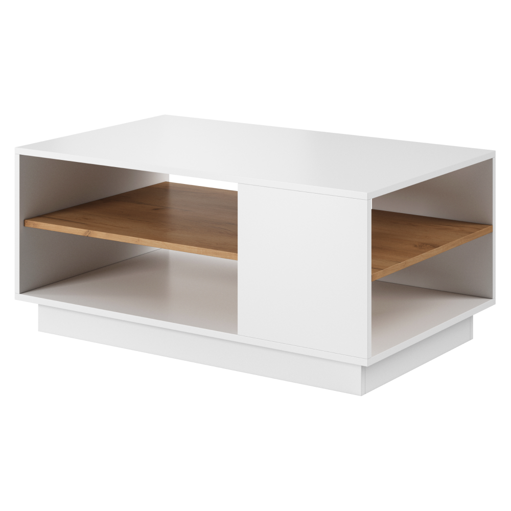 Materiál: DTD laminovaná/ABS hranyFarba: blela/dub craft zlatýRozmery (ŠxHxV): 100x60x45,5 cmS policouOtvorený úložný priestorDizajnovýDodávané v demonte.