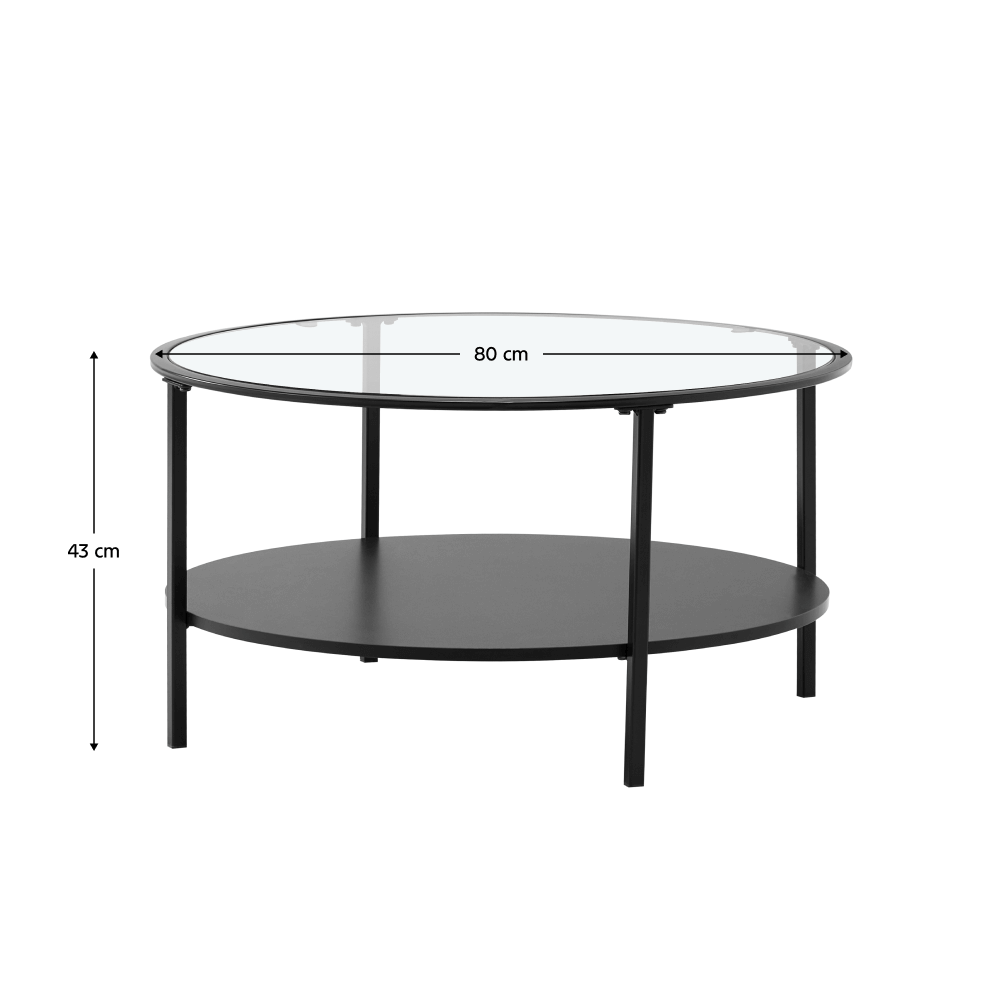 Materiál: sklo/MDF/kovRozmery (PxV): 80x43 cmFarba: číra/čiernaTvrdené skloHrúbka skla: 8 mmNosnosť: 50 kgÚložný priestorDizajnovýOkrúhlyKovové nohyDodávané v demonte